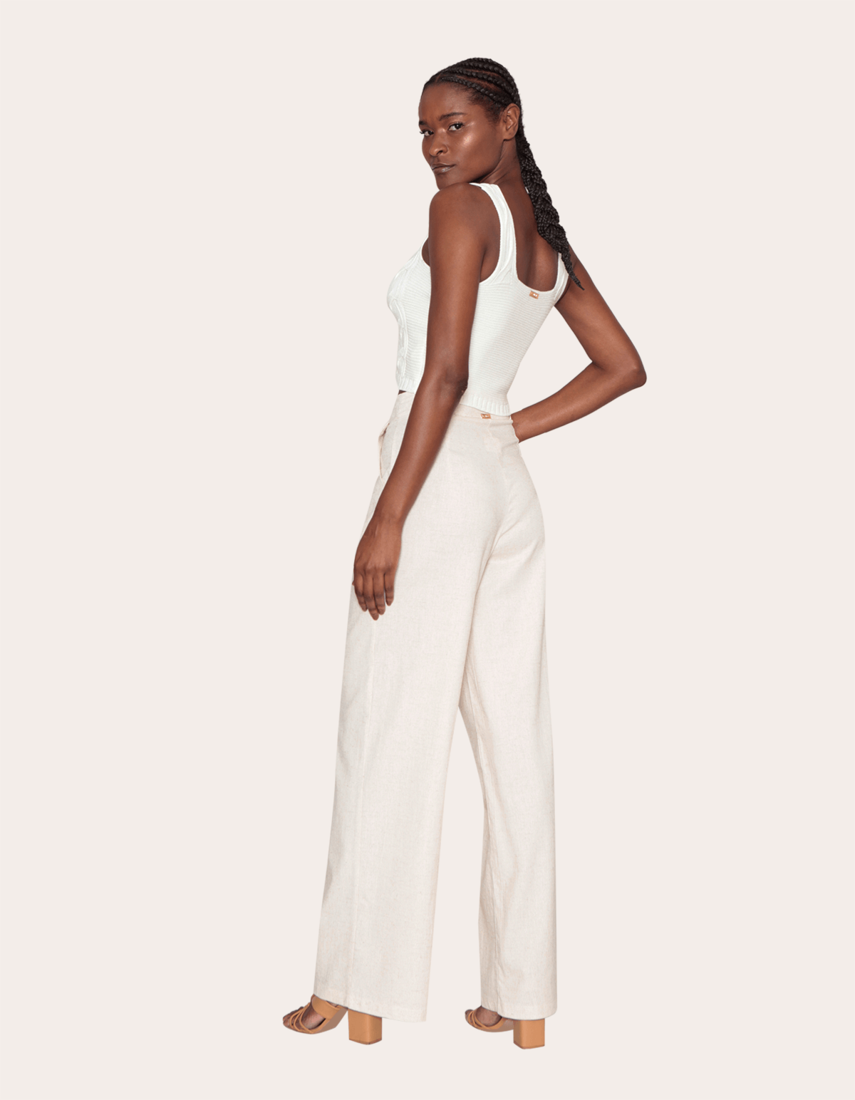 Calça pantalona em linho, muito usada para trabalho, a calça pantalona esbanja elegância por onde passa. ótima também para sair nos finais de semana, seja de dia ou a noite a calça super combina. com pernas largas além de alongar a silhueta deixa nossos movimentos mais soltos, ou seja, conforto absoluto. ela valoriza qualquer biotipo é um clássico renovado para ter em nosso closet. fechamento em zíper frontal e botão forrado, possui 2 bolsos faca nas laterais.