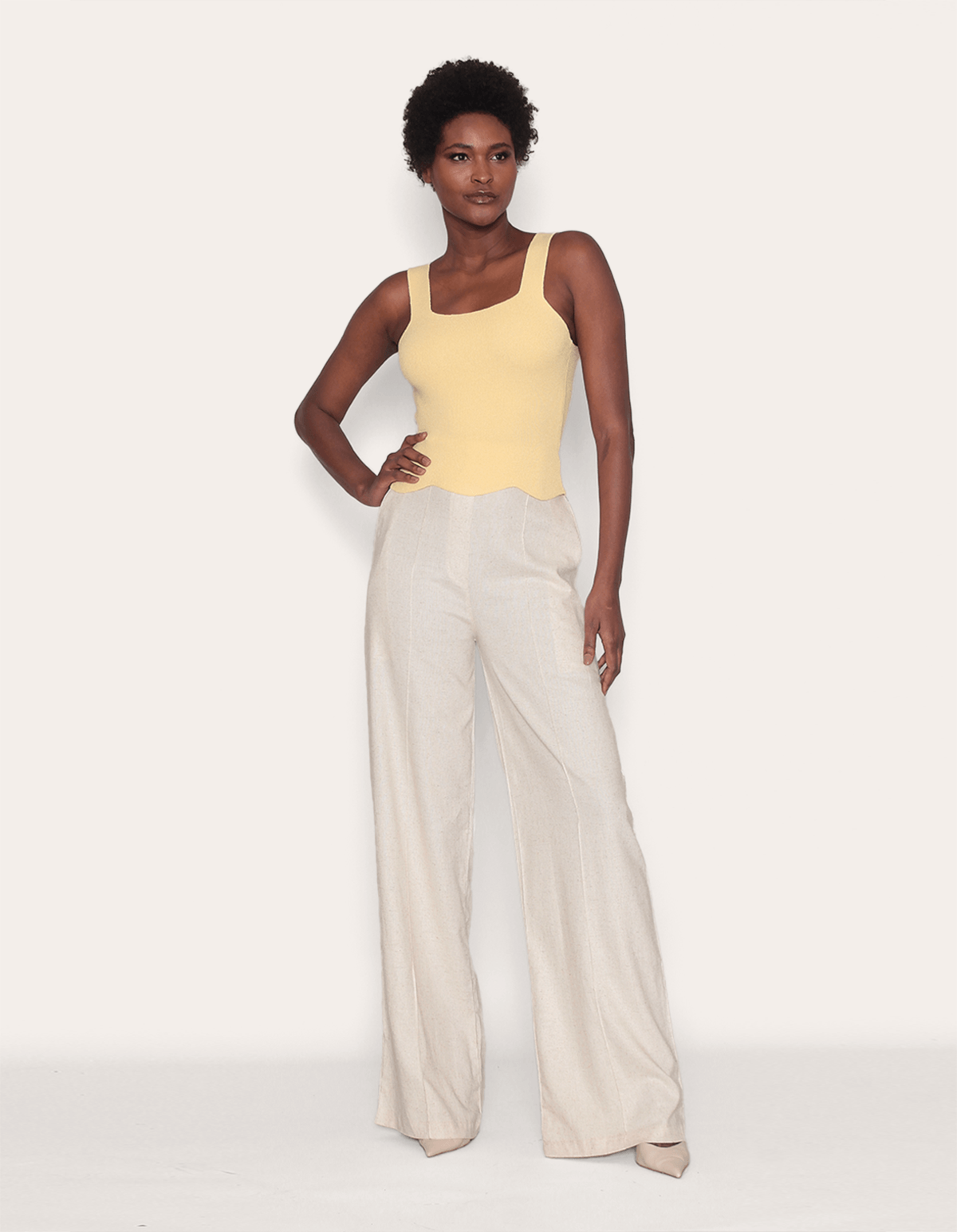 Calça pantalona linho blend
