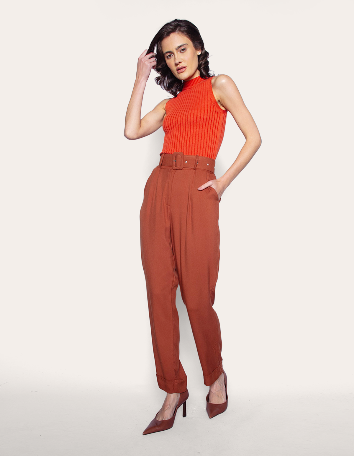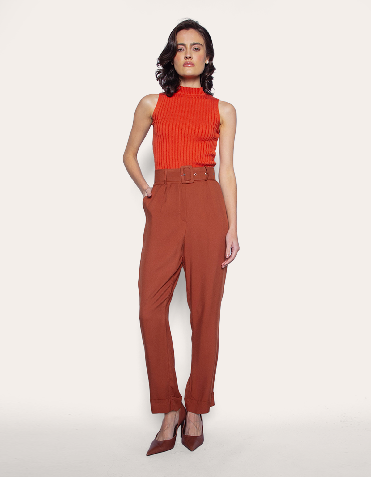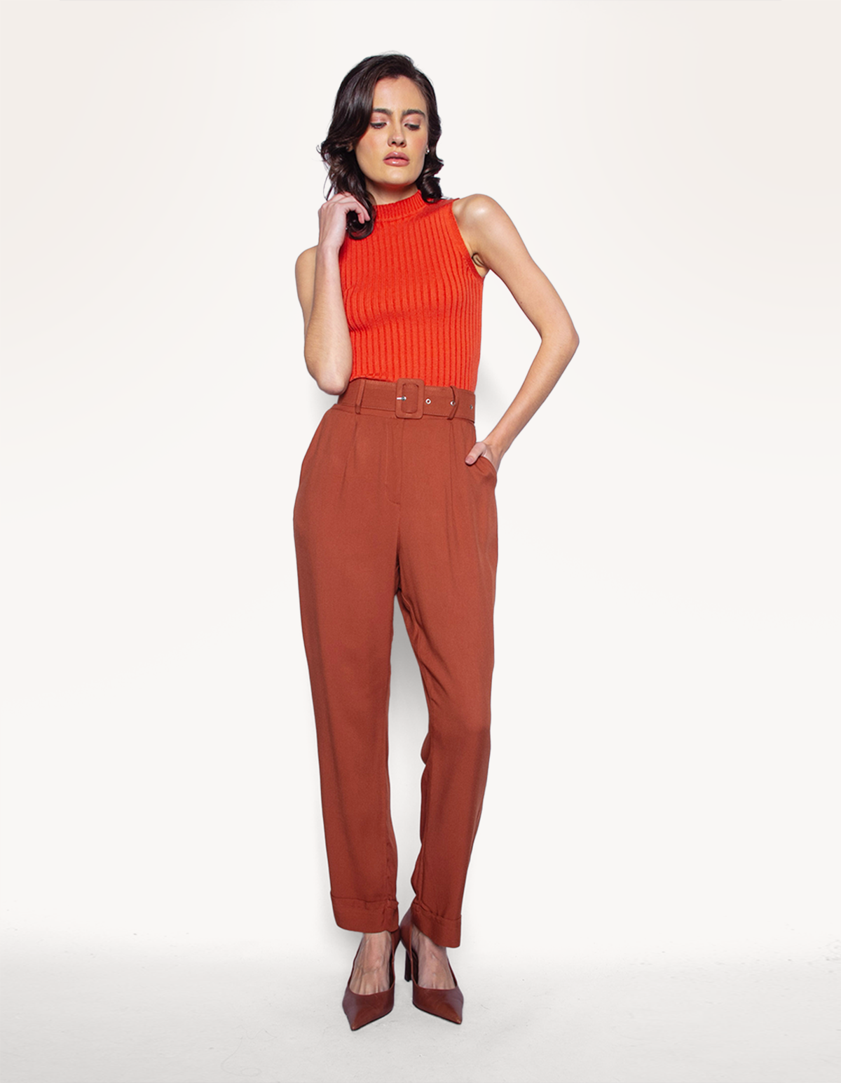 Apresentamos a calça de modelagem reta em alfaiataria, uma peça sofisticada que incorpora as tendências atuais. com pregas frontais em alta, a calça oferece um toque moderno e elegante. sua modelagem reta confere um visual clássico, enquanto os detalhes como bolsos faca laterais e passantes no cós trazem praticidade. o destaque fica por conta do cinto forrado do mesmo tecido, completando o estilo refinado da peça. ideal para diversas ocasiões, essa calça combina moda e elegância de forma harmoniosa.