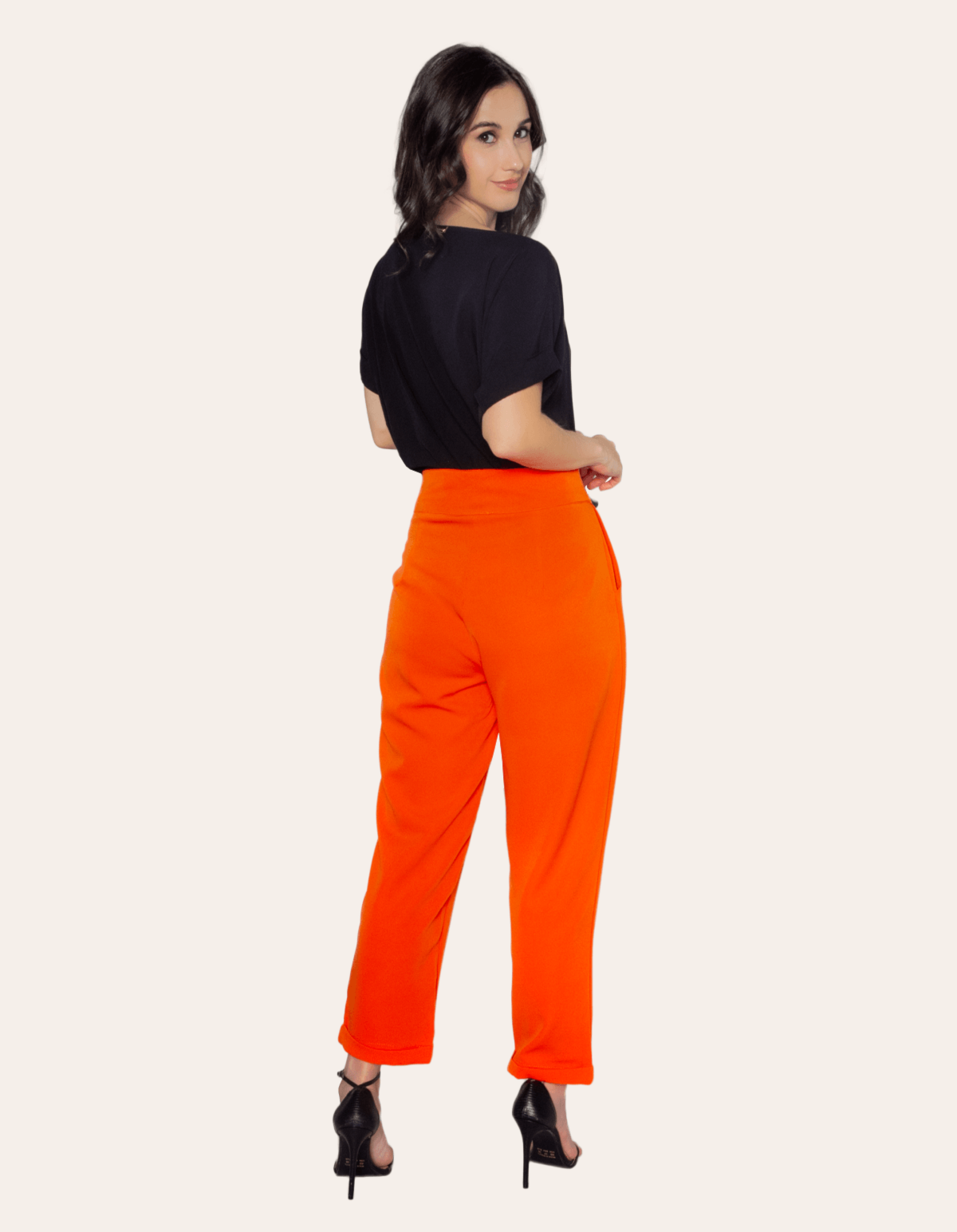 Calça alfaiataria com parte de cima mais larga e mais fina em direção ao tornozelo. nos anos 90, era conhecida como semibag, com pregas na cintura, gancho mais baixo e cintura mais alta.. o modelo tem dois bolsos facas laterais. cós com gancho no lugar e fechamento frontal por zíper e velcro. a barra tem acabamento dobrado.