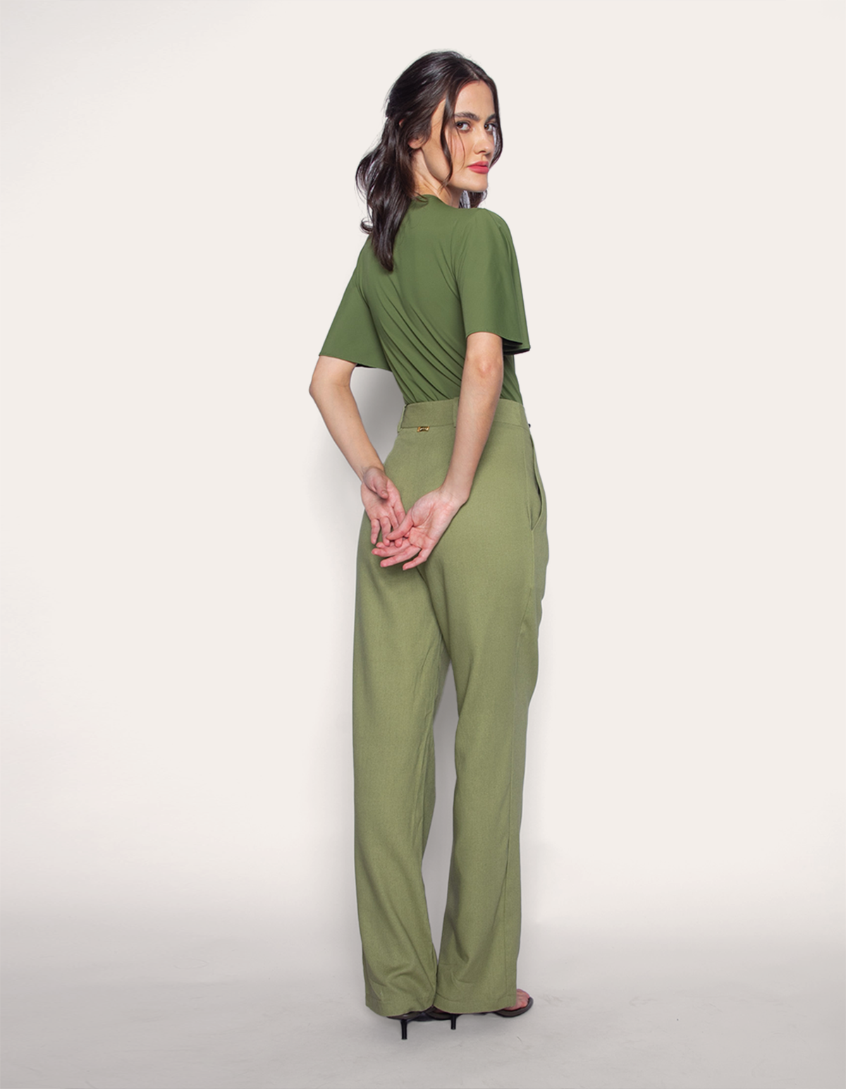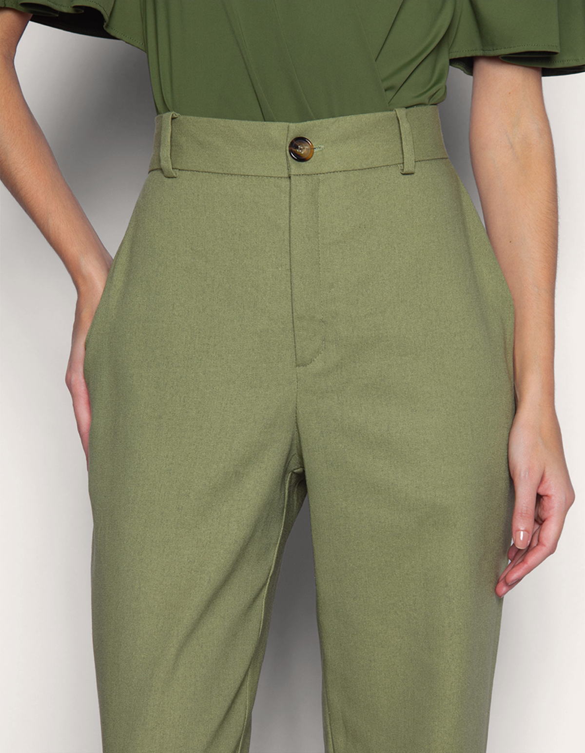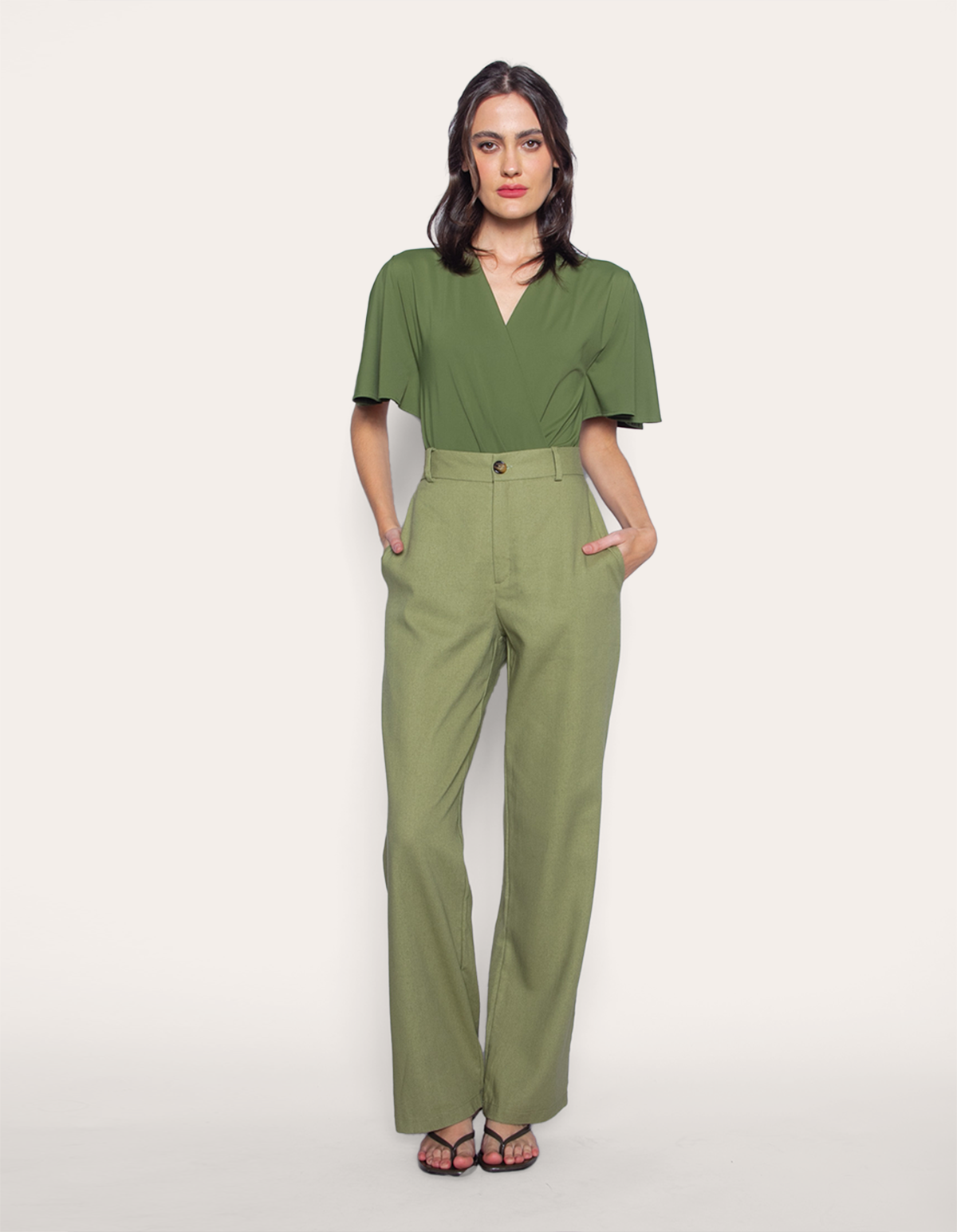Para as cores azul escuro, marrom : 85% Viscose 12% Linho 3% Elastano