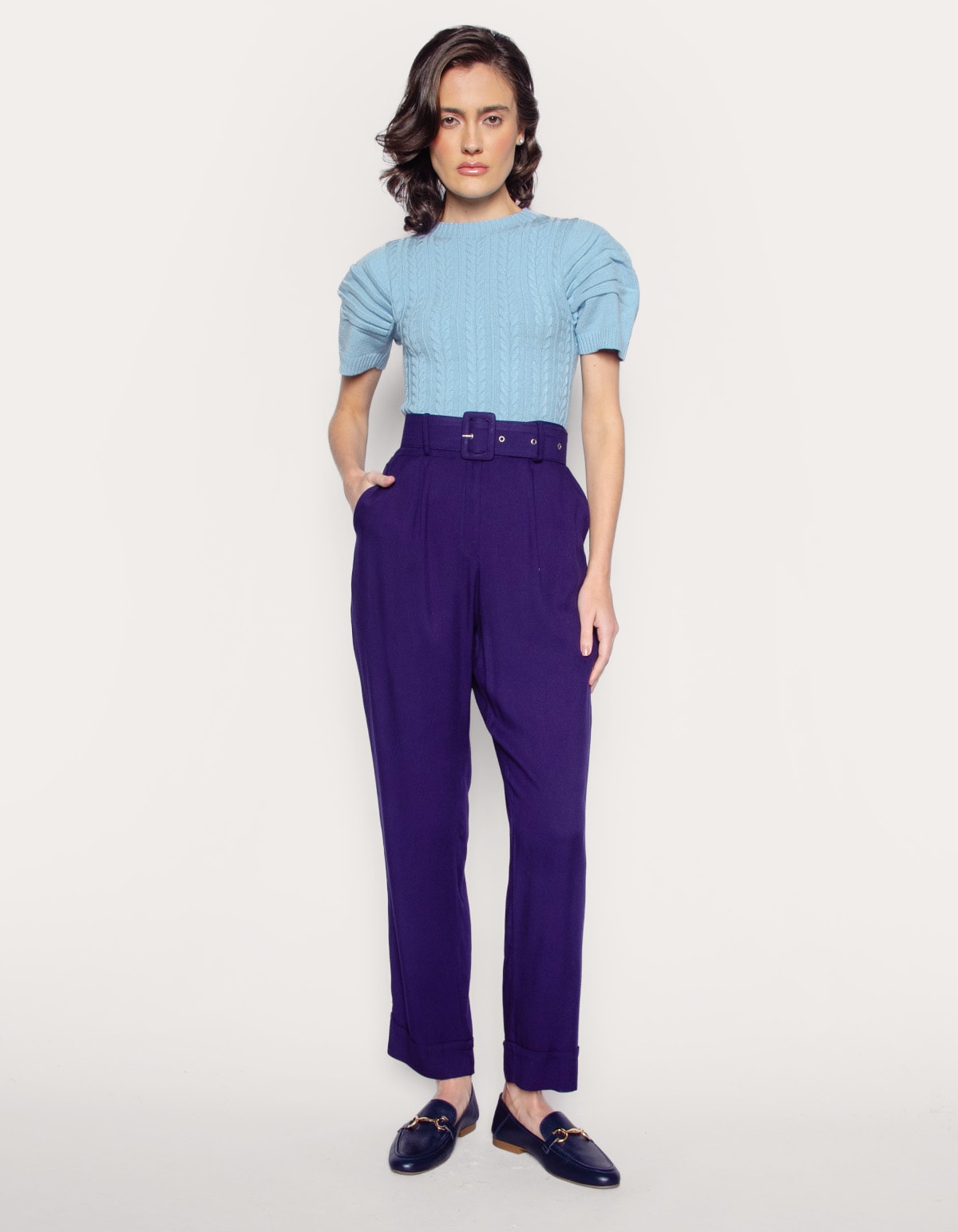 Apresentamos a calça de modelagem reta em alfaiataria, uma peça sofisticada que incorpora as tendências atuais. com pregas frontais em alta, a calça oferece um toque moderno e elegante. sua modelagem reta confere um visual clássico, enquanto os detalhes como bolsos faca laterais e passantes no cós trazem praticidade. o destaque fica por conta do cinto forrado do mesmo tecido, completando o estilo refinado da peça. ideal para diversas ocasiões, essa calça combina moda e elegância de forma harmoniosa.