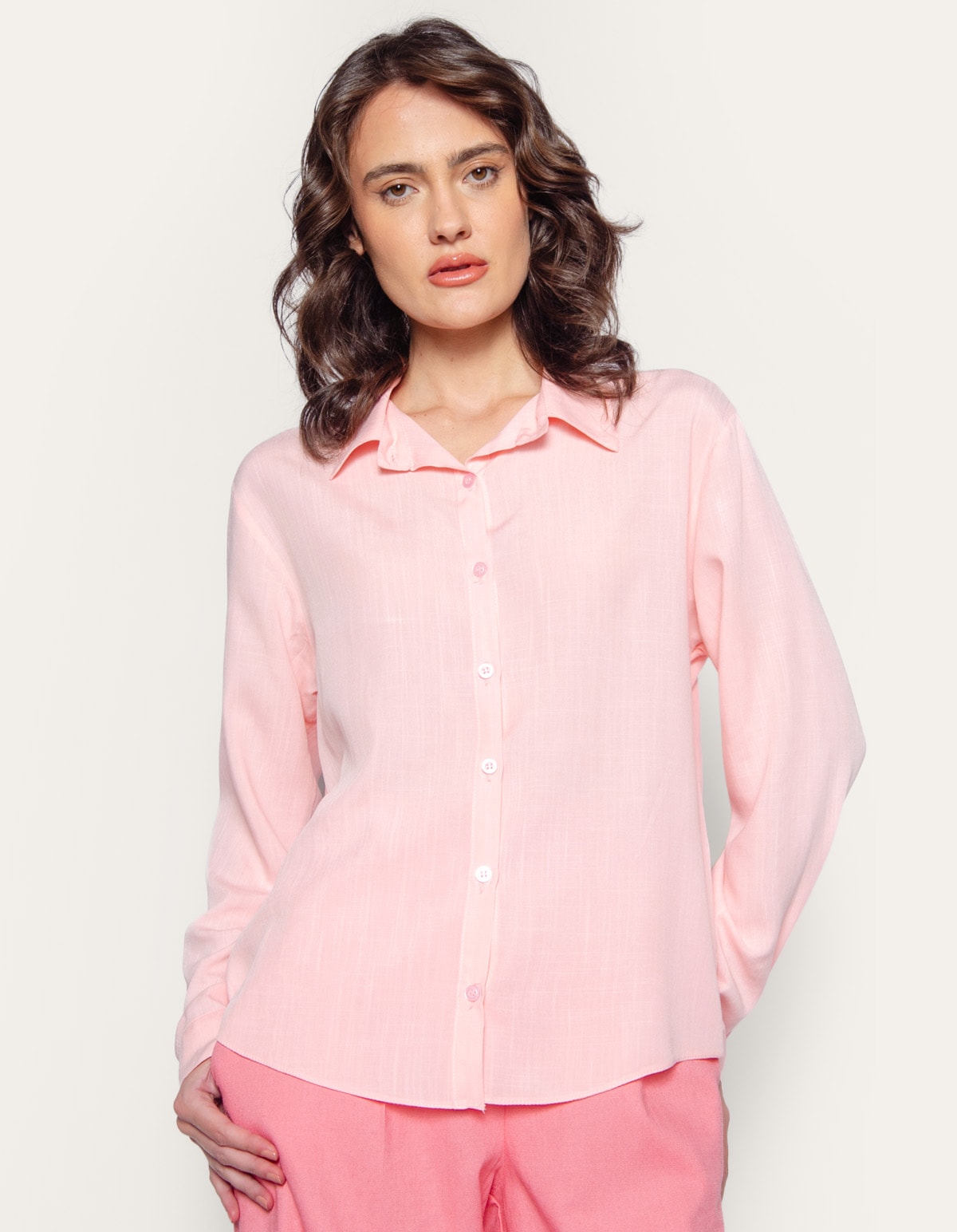 A camisa “Clara” é uma peça básica e atemporal, com modelagem casual e acabamento simples e funcional. Possui gola clássica com colarinho e vista frontal com fechamento por botões, garantindo um visual limpo e versátil.