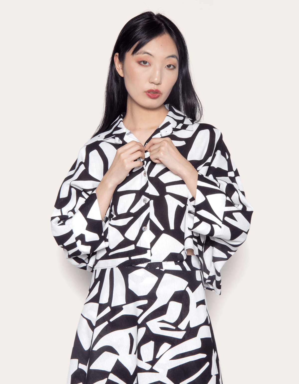 Camisa confeccionada em tecido plano de viscolinho estampado. a modelagem cropped tem comprimento curto, enquanto o caimento é solto e amplo. o modelo tem mangas curtas amplas, gola com lapela e vista frontal de botões. uma peça que valoriza o corpo e traz leveza à estação com um toque de sofisticação ao visual. calça pantalona, skinny, wide leg ou shorts: escolha a sua combinação favorita e crie um look único!
