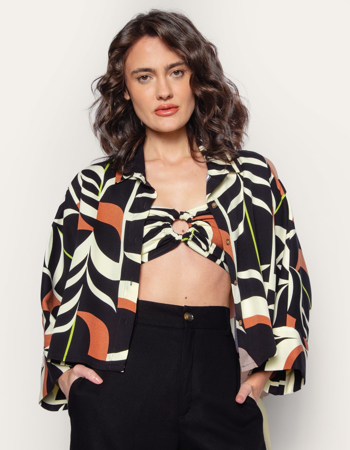 Camisa cropped ampla estampada