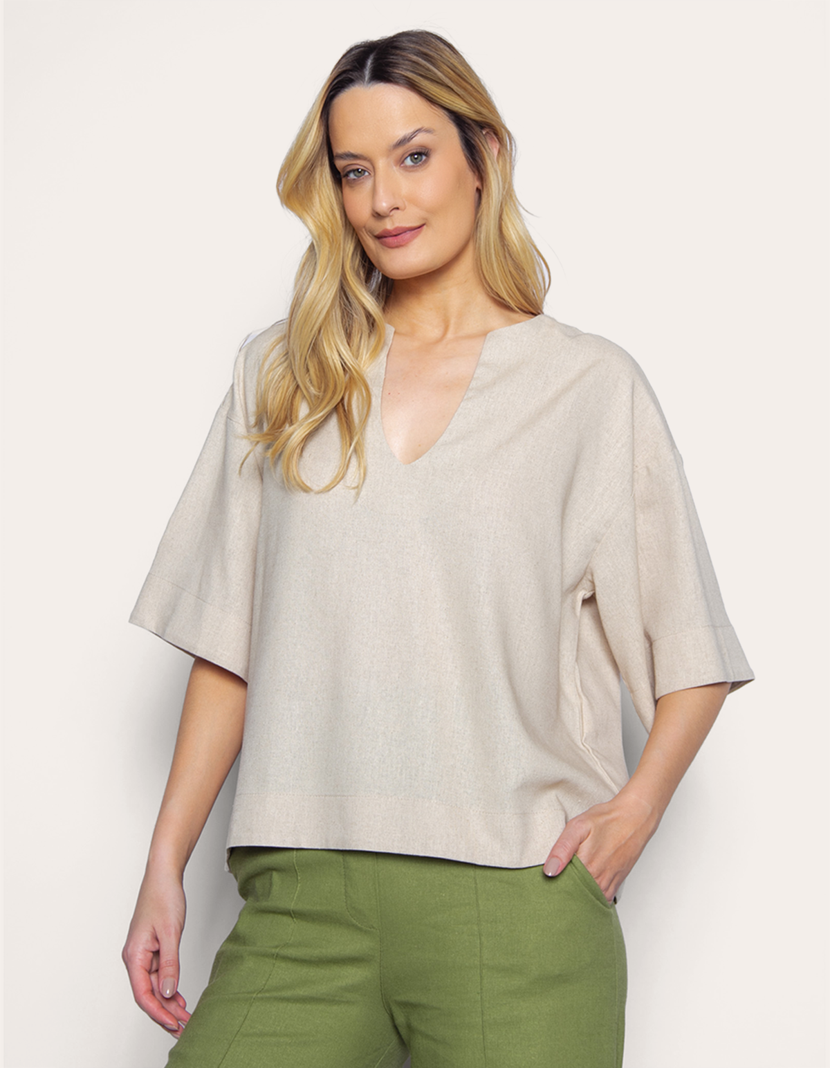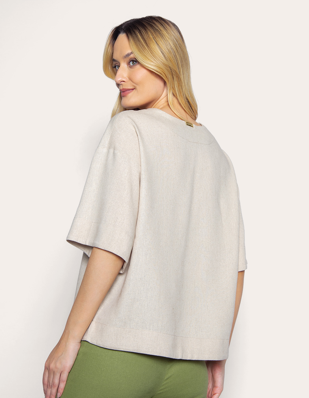 Para as cores preto, off white: 80% Viscose 15% linho 5% Algodão