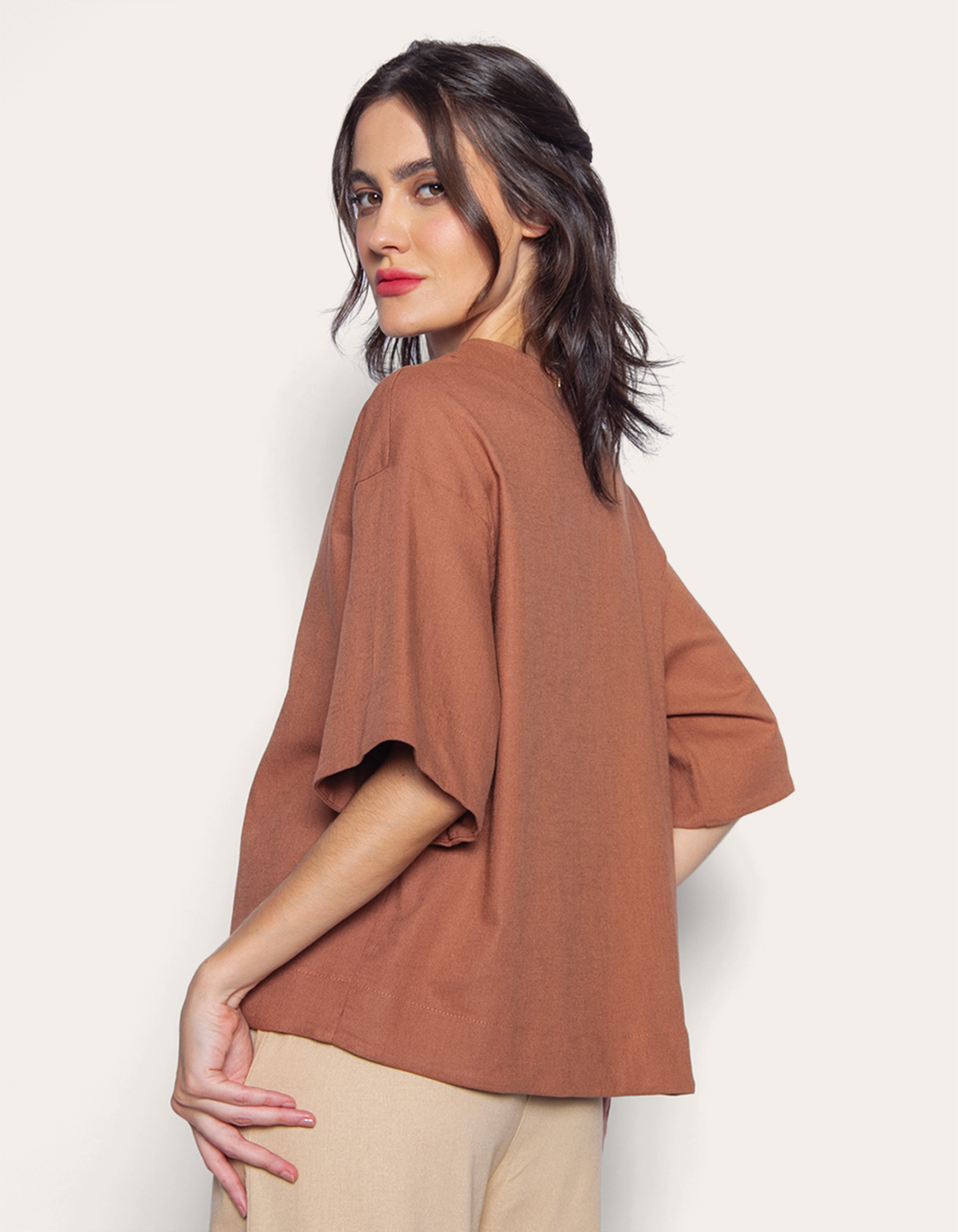 Para as cores marrom: 85% Viscose 12% Linho 3% Elastano