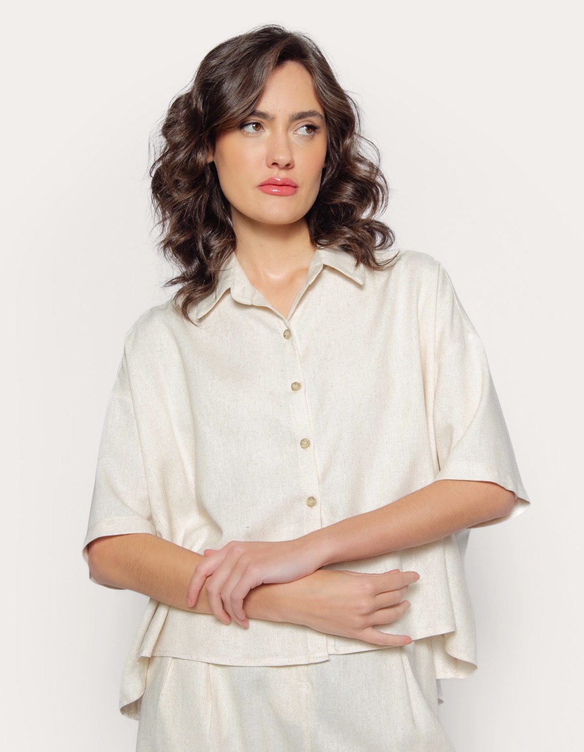 Camisa cropped linho blend