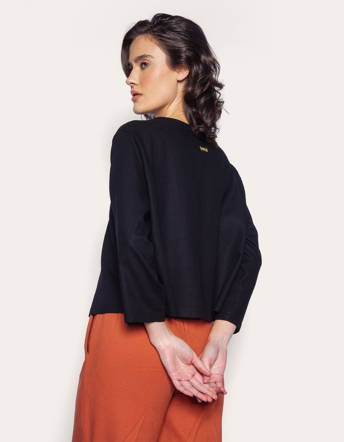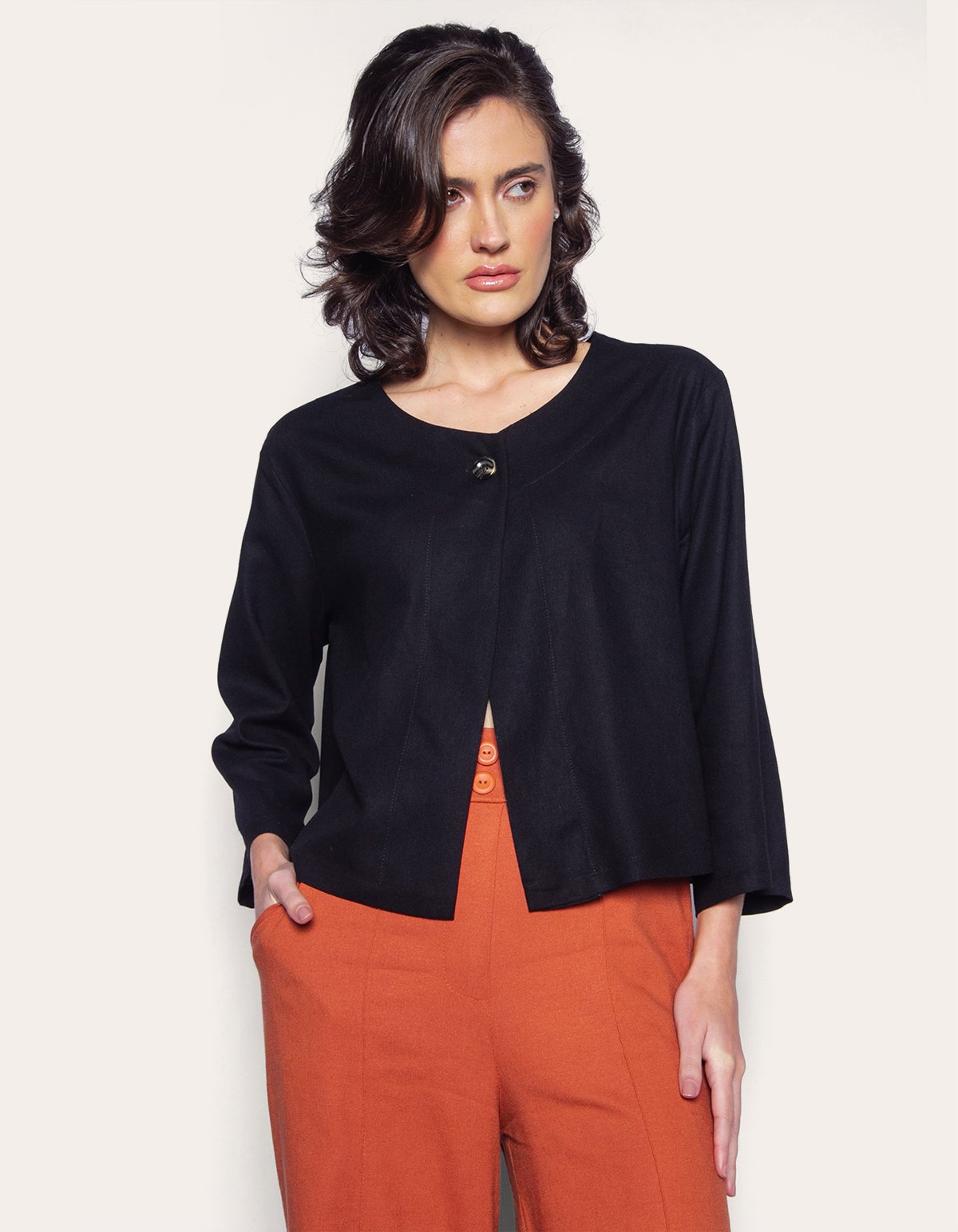 Para as cores preto, bege claro: 80% Viscose 15% linho 5% Algodão