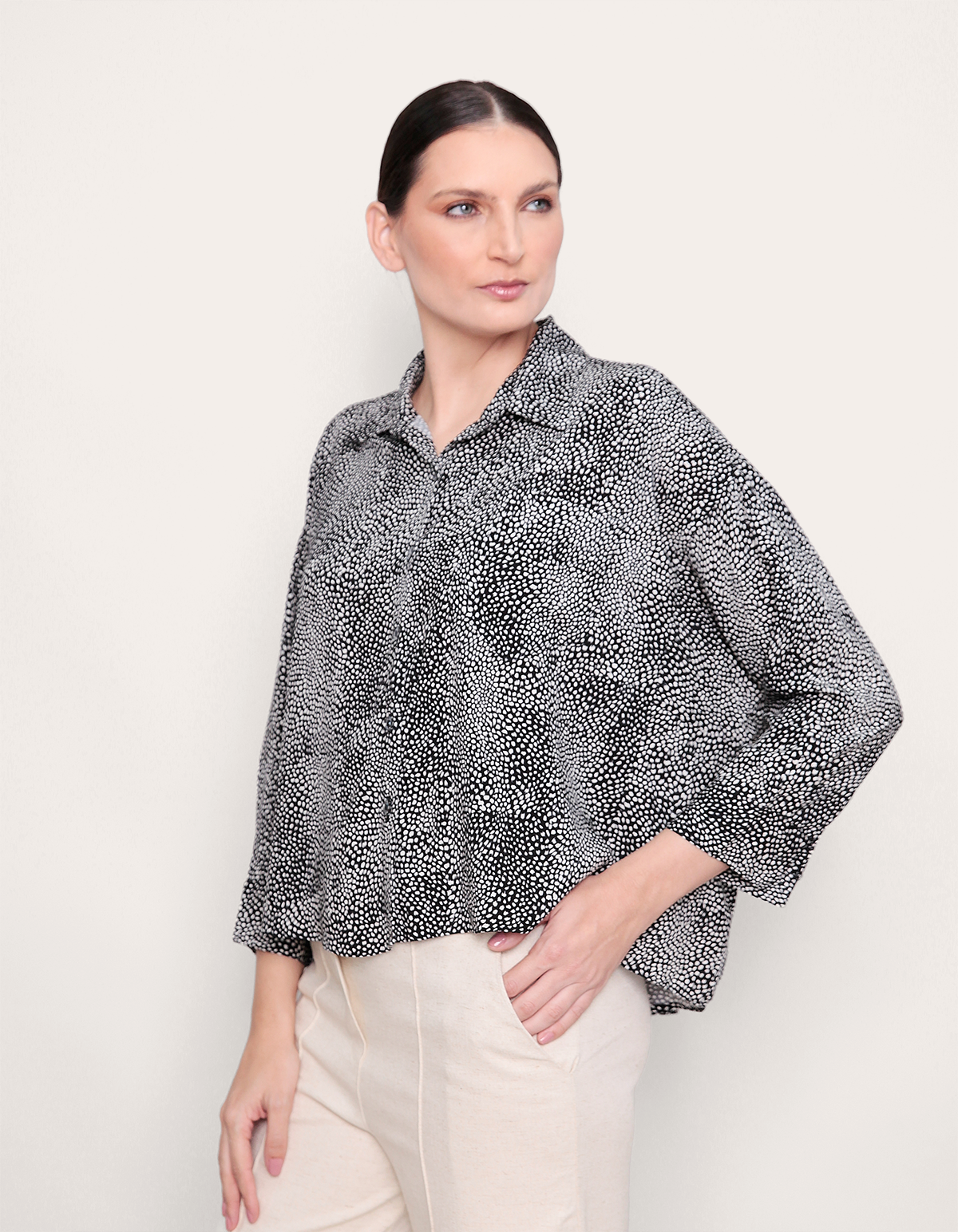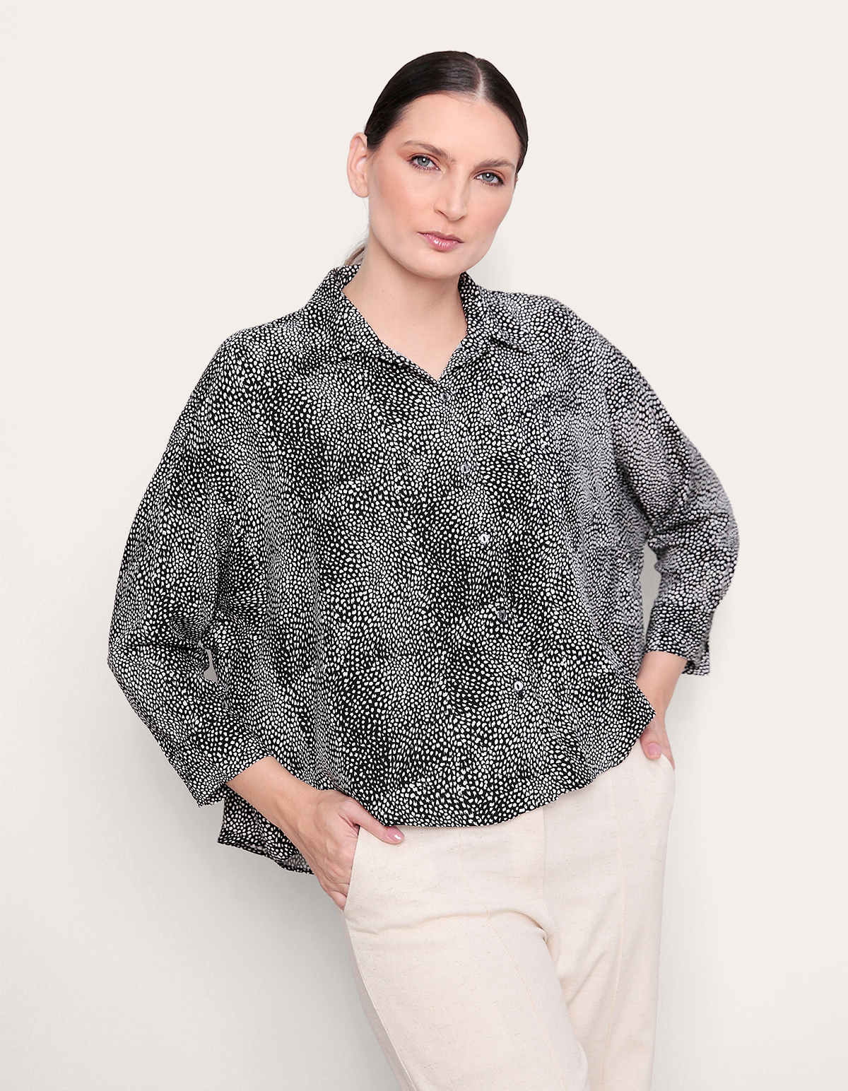 Camisa manga longa, modelagem ampla com fechamento em botões na frente. é uma peça elegante, sofisticada e feita para você mulher que não abre mão de um visual chic e social para o dia a dia.