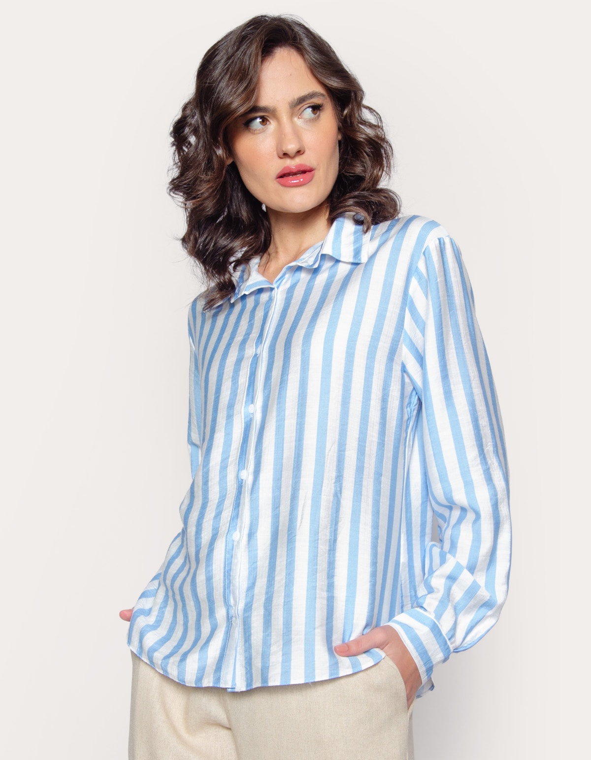 Camisa manga longa, padronagem em listras finas verticais, com colarinho tradicional e fechamento frontal por botões alinhados. Bastante versátil, pode ser usada em várias ocasiões, dependendo dos acessórios do estilo de combinação: ambientede trabalho casual, almoço ou jantar, saída a noite com toque de estilo. Combine com calças, saias. Ao escolher a ocasião, o truque é ajustar os acessórios e a parte de baixo para a formalidade do event, tornando a camisa adequada para o seu estilo pessoal e situração.