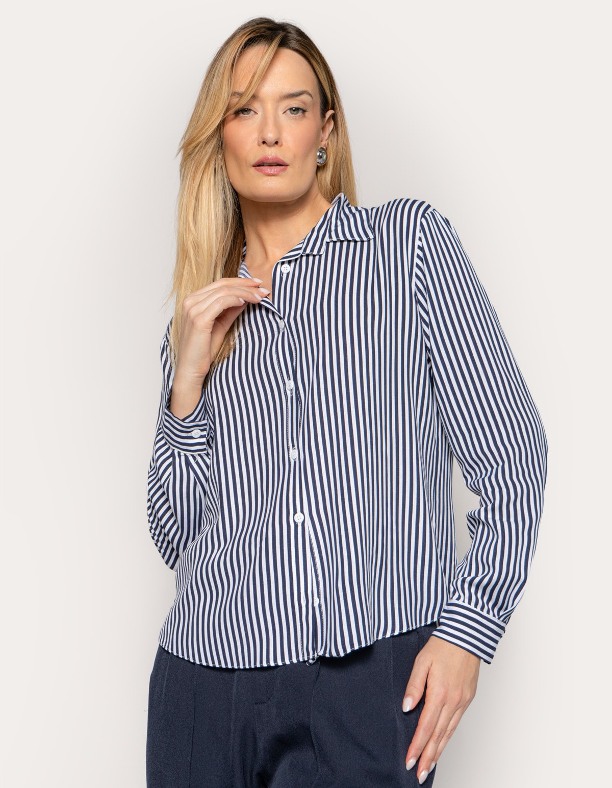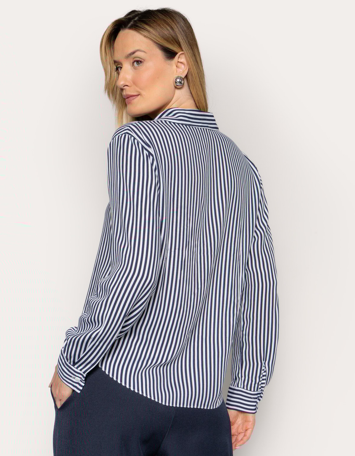 Esta camisa é a escolha perfeita para quem busca versatilidade. Com uma estampa de listras finas, ela transita facilmente do ambiente de trabalho (com uma calça de alfaiataria) para um look despojado de fim de semana (com jeans ou shorts).