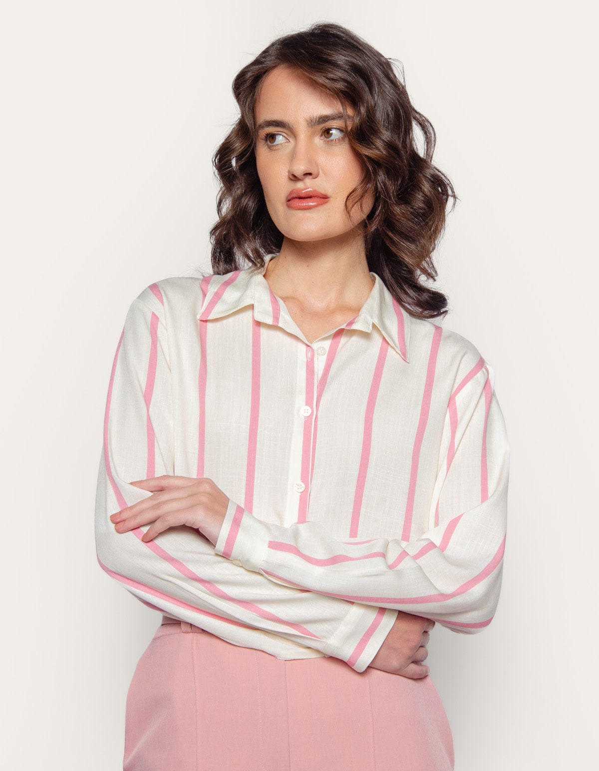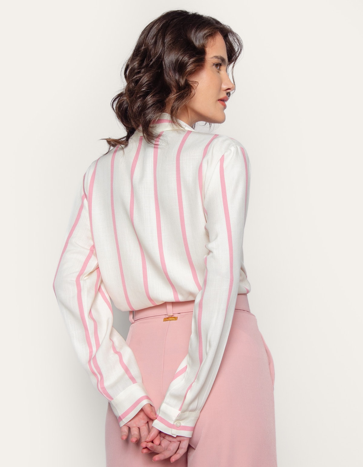 Camisa manga longa, padronagem em listras finas verticais, com colarinho tradicional e fechamento frontal por botões alinhados. Bastante versátil, pode ser usada em várias ocasiões, dependendo dos acessórios do estilo de combinação: ambientede trabalho casual, almoço ou jantar, saída a noite com toque de estilo. Combine com calças, saias. Ao escolher a ocasião, o truque é ajustar os acessórios e a parte de baixo para a formalidade do event, tornando a camisa adequada para o seu estilo pessoal e situração.