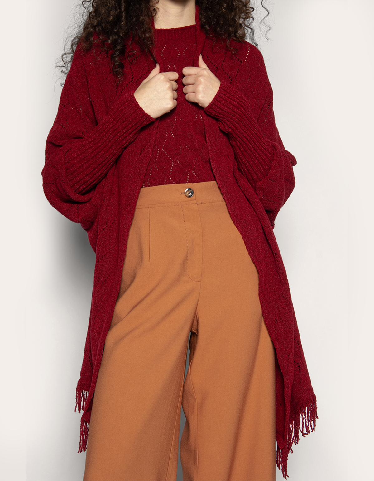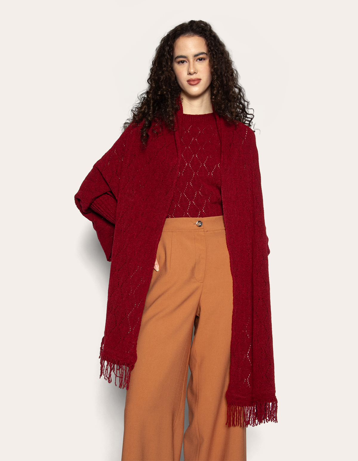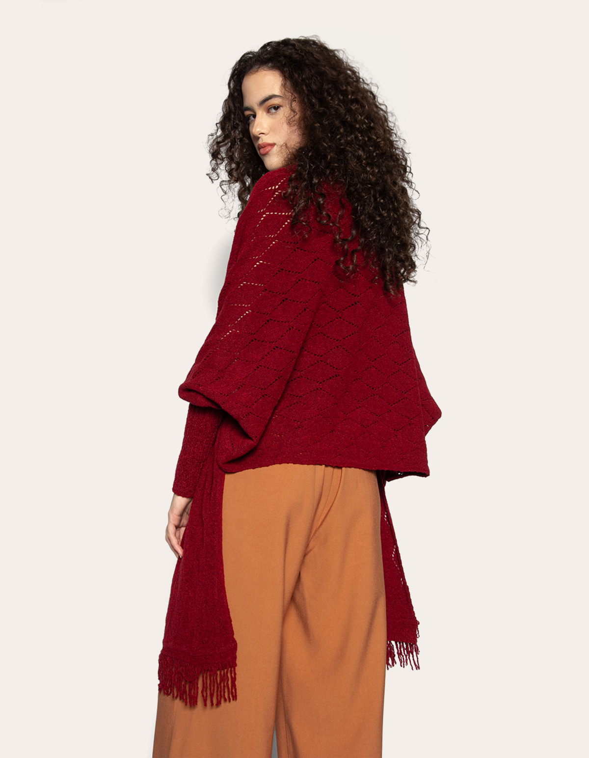 Produzida no fio mousse de excelente qualidade, possui uma linda trama vazada, possui também várias franjas em sua barra deixando o look além de lindo, moderno e despojado. É uma capa super confortável e quentinha, perfeita para os dias frios, ideal para ser usada em um passeio familiar no parque ou em ambiente de trabalho, sendo possível fazer excelentes combinações de looks, sem perder seu estilo e conforto, ou seja, feito para todos os estilos tanto casuais como formais.
