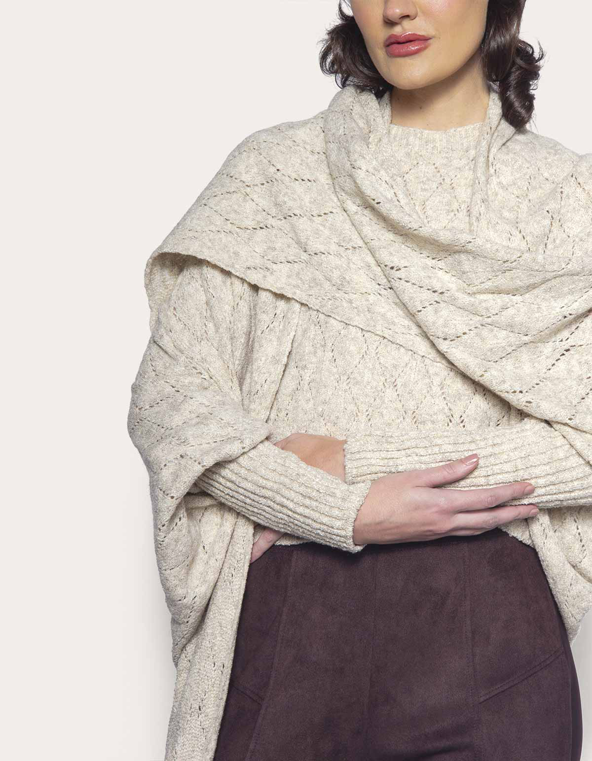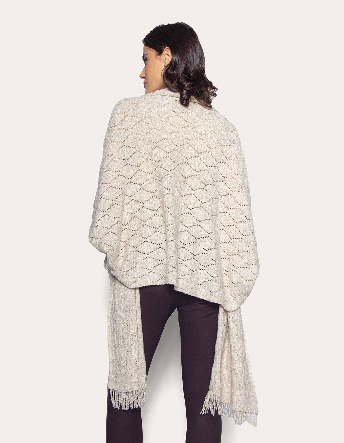 Produzida no fio mousse de excelente qualidade, possui uma linda trama vazada, possui também várias franjas em sua barra deixando o look além de lindo, moderno e despojado. É uma capa super confortável e quentinha, perfeita para os dias frios, ideal para ser usada em um passeio familiar no parque ou em ambiente de trabalho, sendo possível fazer excelentes combinações de looks, sem perder seu estilo e conforto, ou seja, feito para todos os estilos tanto casuais como formais.