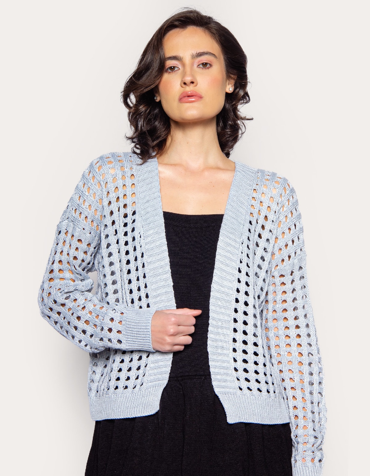 Cardigan confeccionado em tricot com trama aberta tipo tela. a peça possui mangas longas com punhos canelados, caimento reto, sem forro e acabamento canelado. por aqui, nossas peças não se limitam as baixas temperaturas. pelo contrário, com elas você multiplica seu visual e ainda desfila por aí com estilo de sobra, sem se preocupar!
