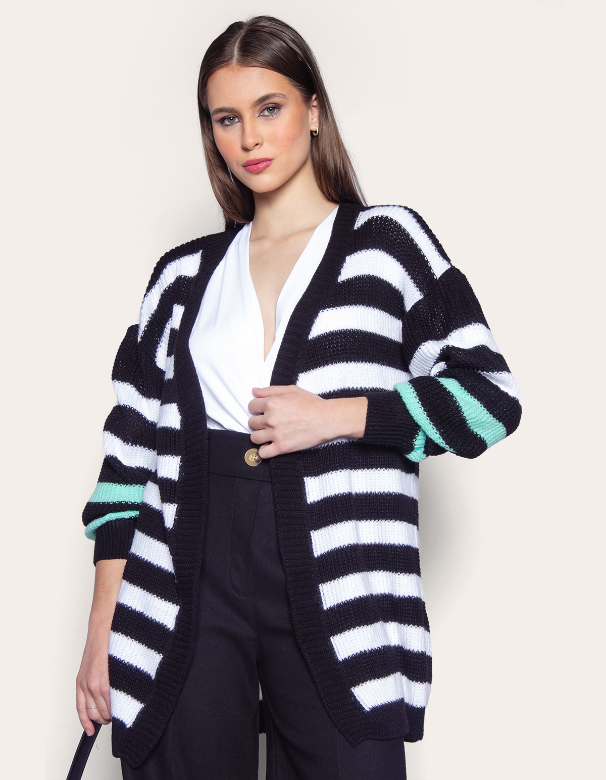 Casaco super quentinho, confeccionado em tricot que garante um toque macio e aconchegante. Com modelagem solta e over, ele proporciona conforto e liberdade de movimento, perfeito para os dias mais frios. Sem fechamento, possui mangas longas e listras tricolores que adicionam um charme especial ao visual. Ideal para compor looks casuais e sofisticados ao mesmo tempo.