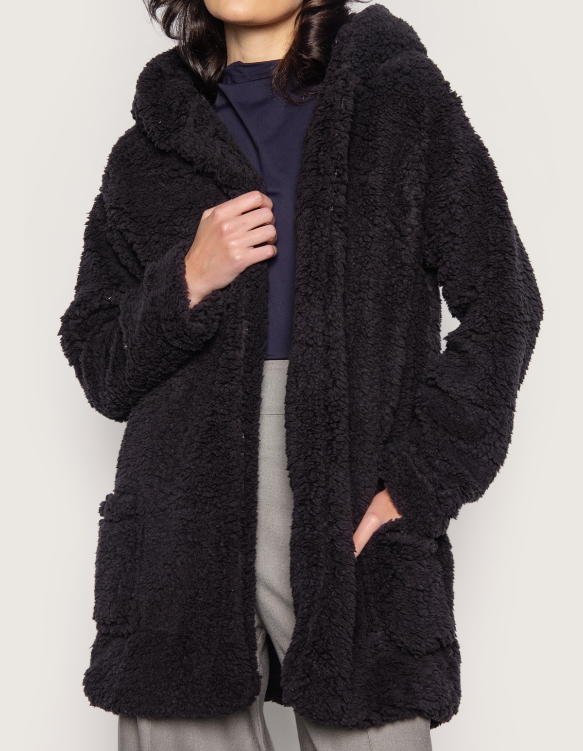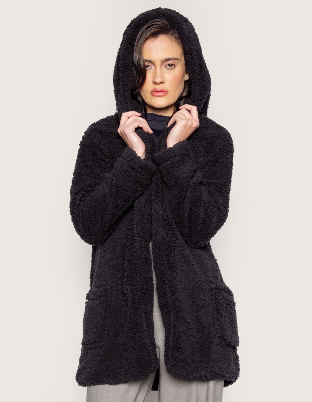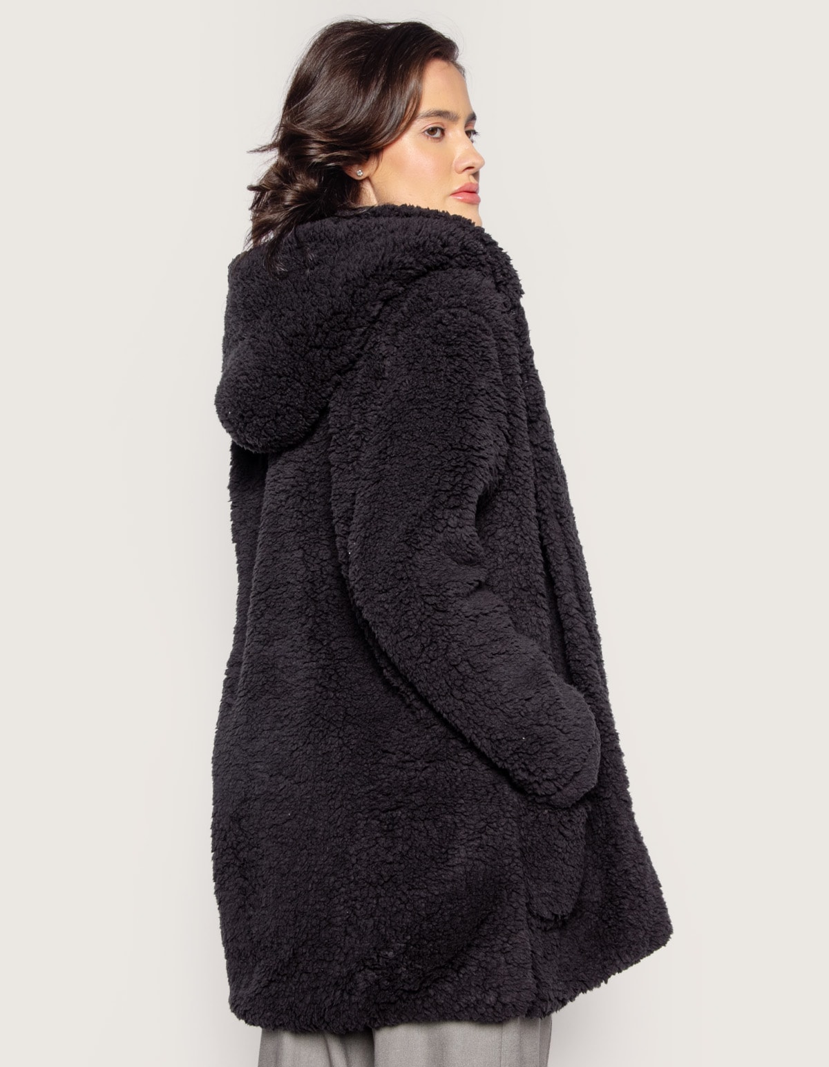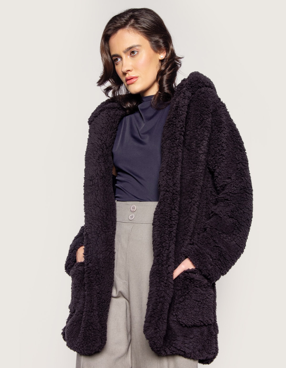 Casaco teddy, uma peça confortável e estilosa. feito com pelúcia macia, oferece calor e estilo. sem fechamento, destaca a textura da pelúcia. possui forro interno, bolsos frontais práticos e capuz funcional. versátil, pode ser combinado para diferentes ocasiões. ideal para criar looks acolhedores e descontraídos em dias frios, unindo conforto e estilo de forma única.