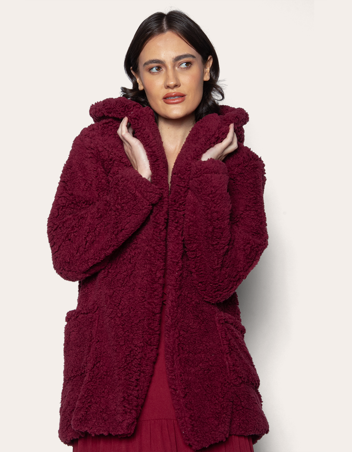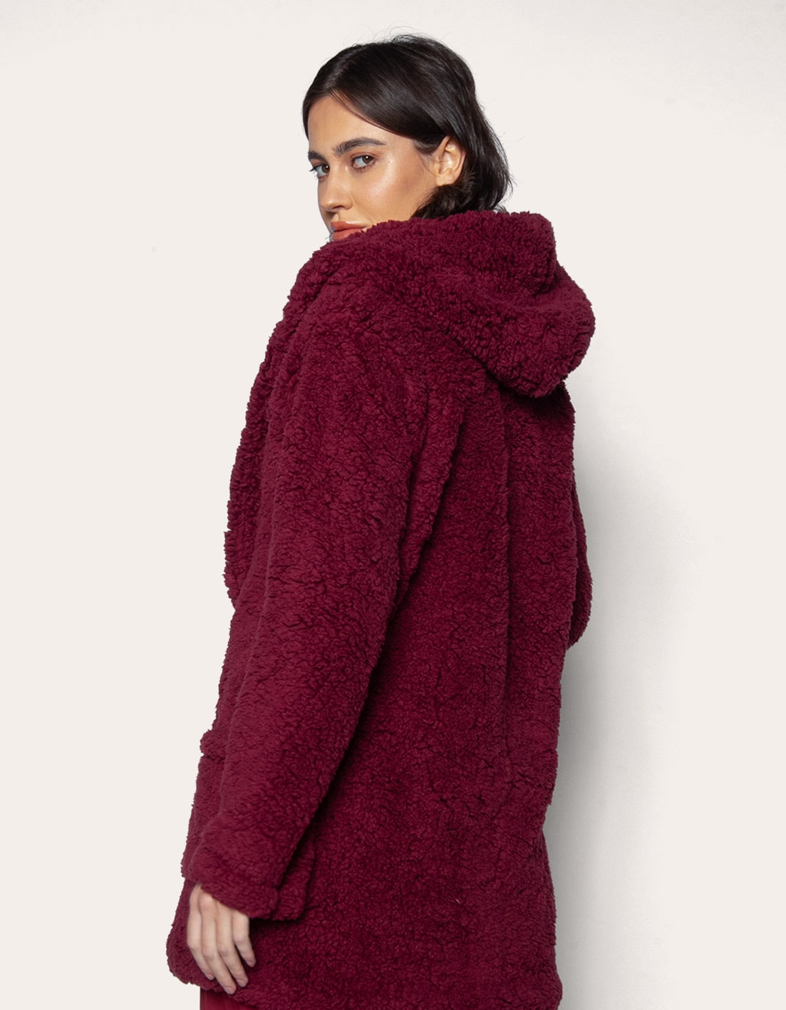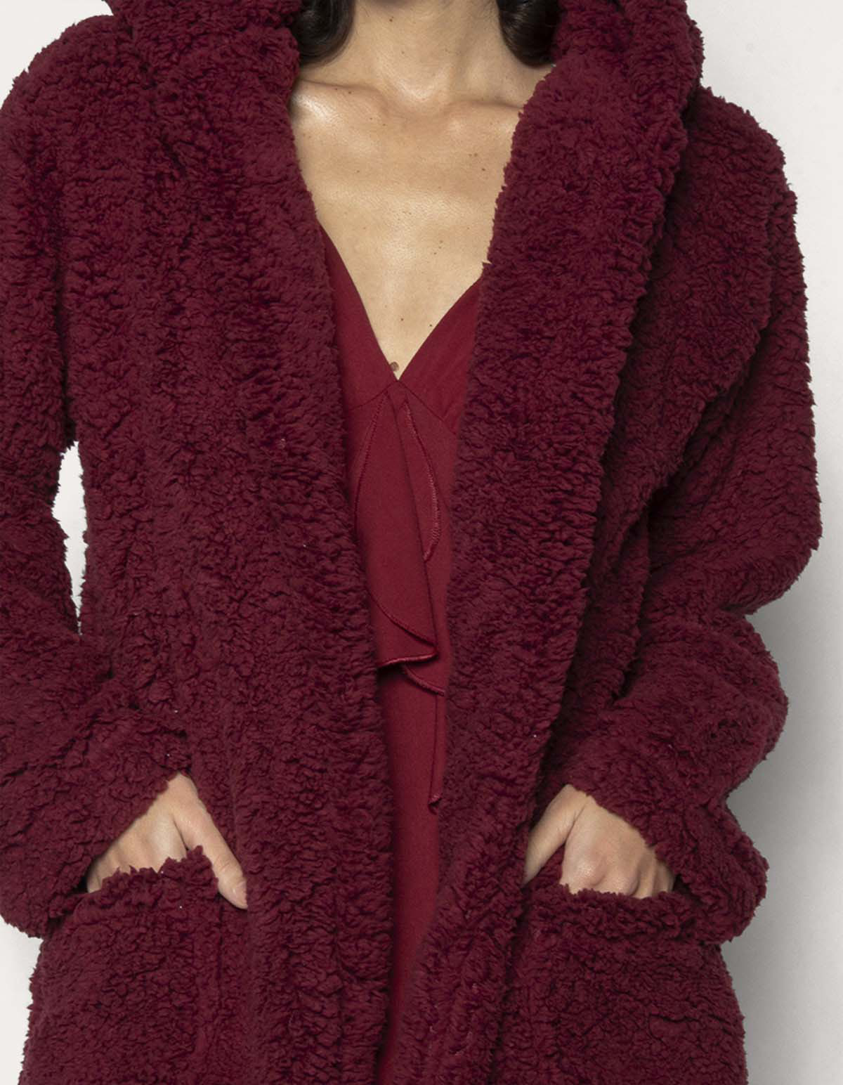 Casaco teddy com capuz