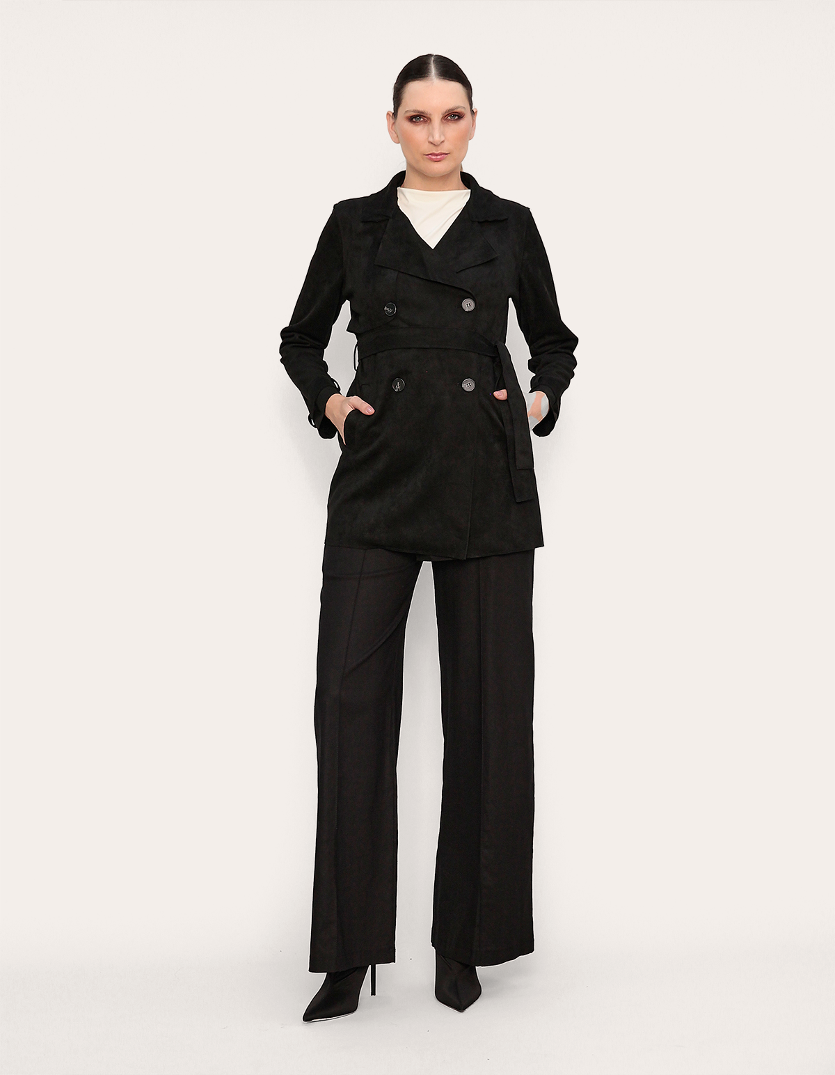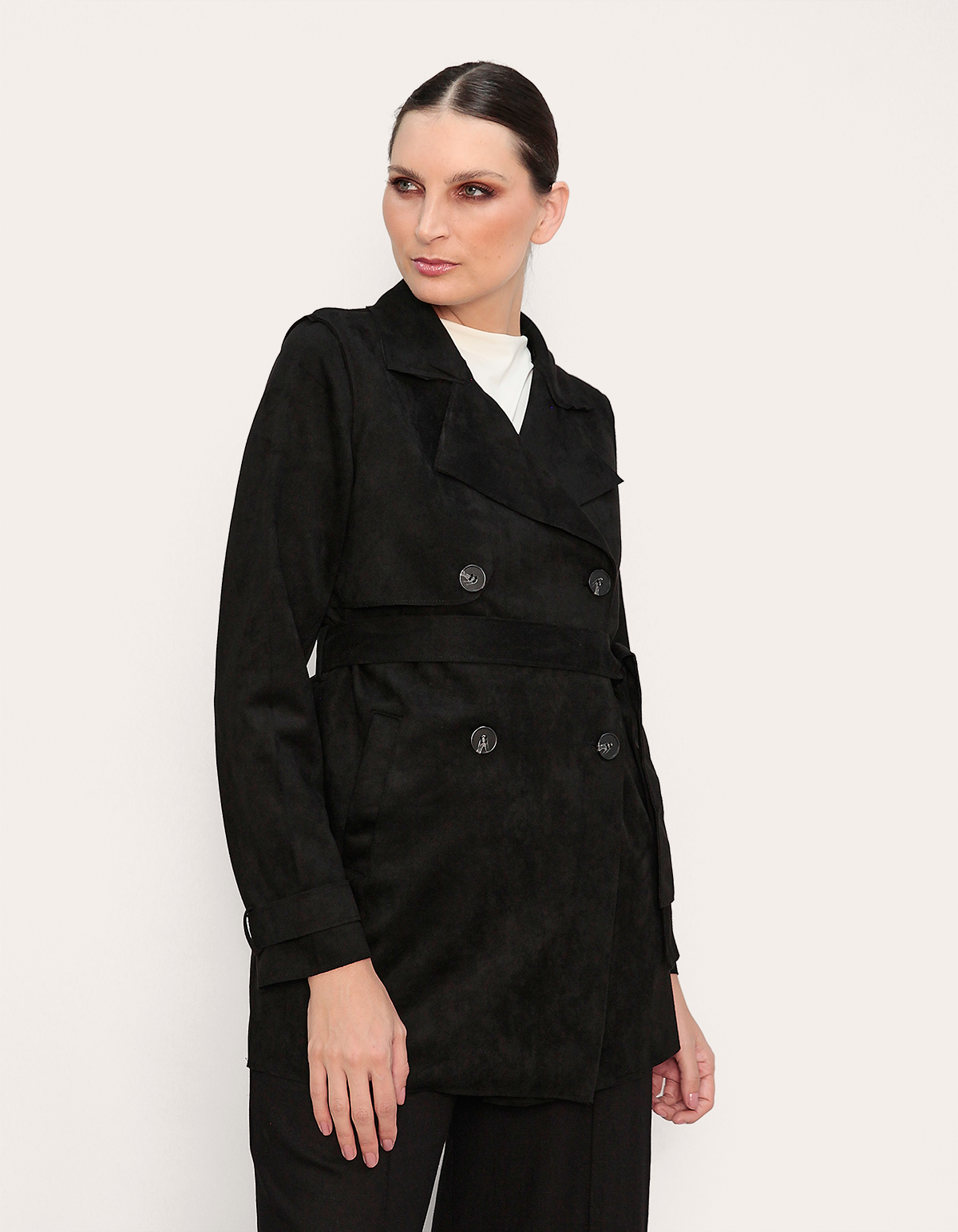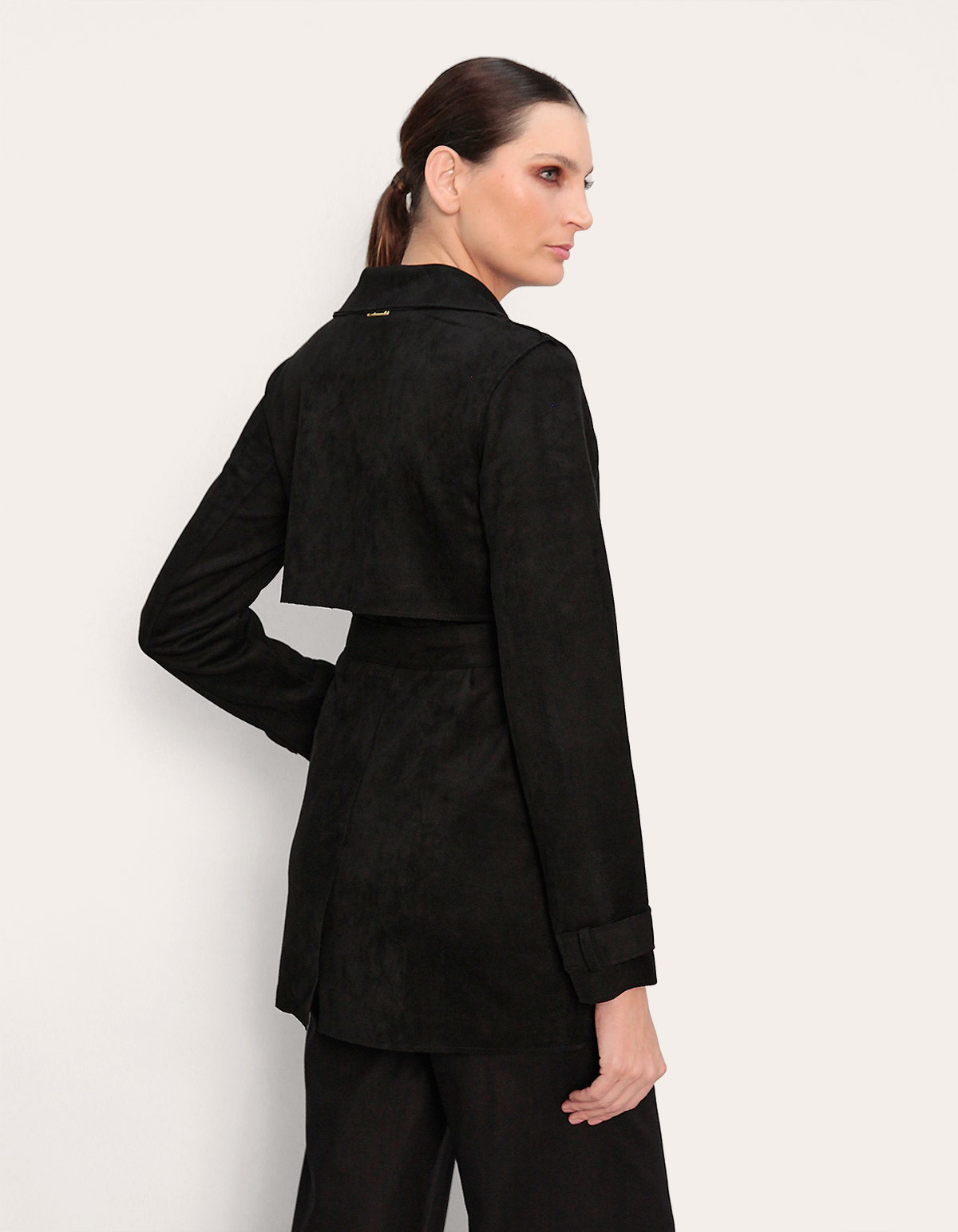 Casaco modelo casual, confeccionado em suede, possui 2 bolsos frontais abertos, comprimento médio. perfeito para deixar os dias mais quentinhos, com detalhe nas mangas e cinto amarração. moderno e confortável é indicado para os dias mais frios e amenos para compor varios looks da estação.