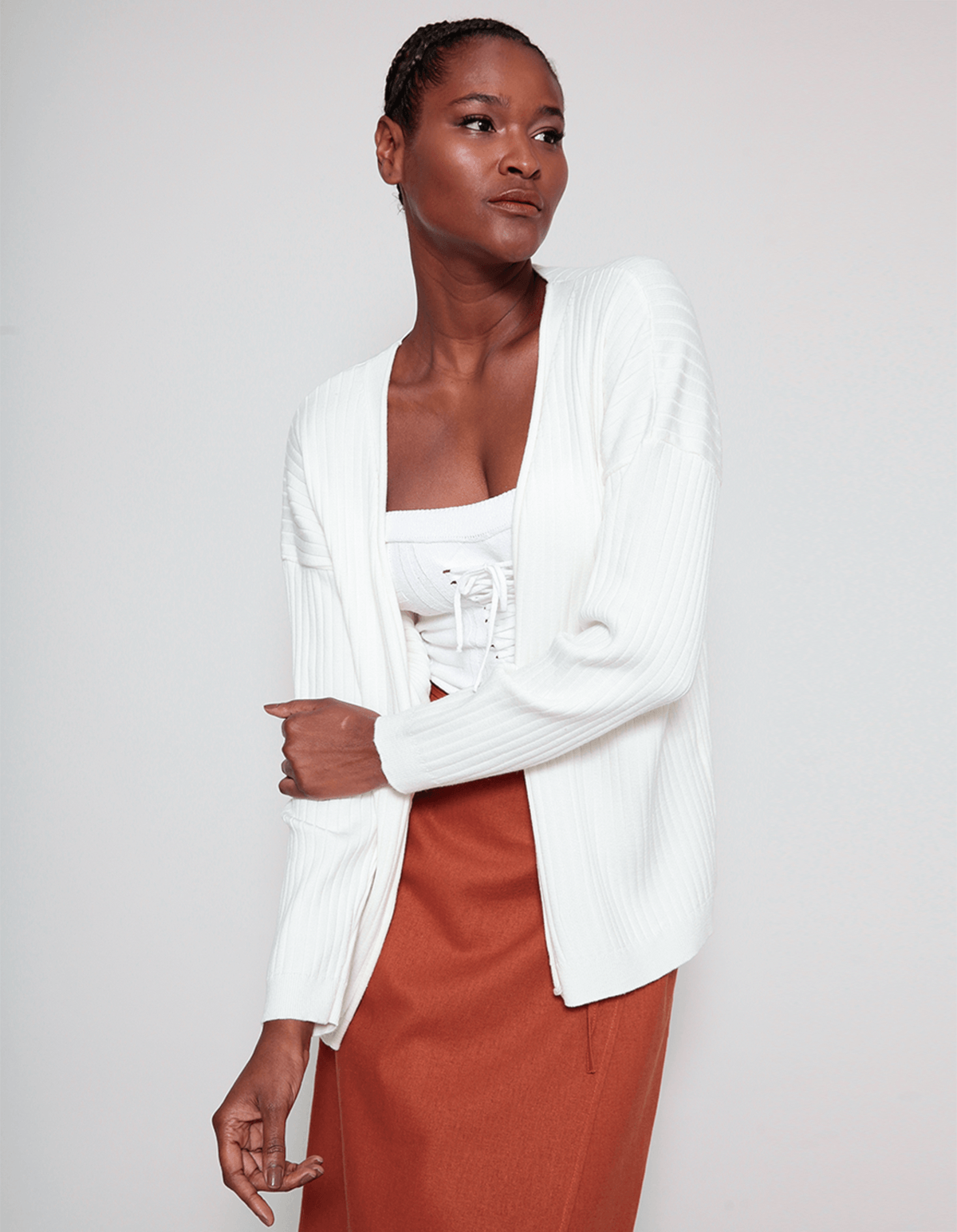 O cardigan tricot é a peça ideal para um visual aconchegante e estiloso. confeccionado em tricot canelado, proporciona conforto e um toque suave à pele. apresenta um design moderno, conferindo um toque de originalidade à peça. a sua versatilidade permite combinações diversas, adaptando-se a diferentes estilos e ocasiões. ideal para criar sobreposições estilosas e se proteger nos dias mais frescos.