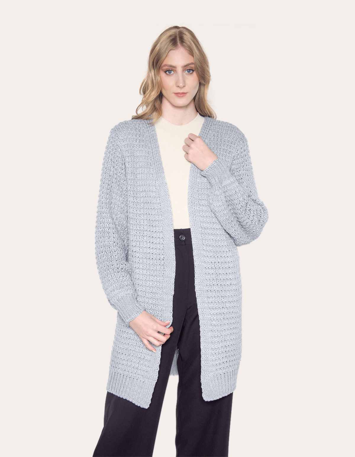 Apresentamos o casaco de tricot ponto aberto, uma peça versátil que combina conforto e estilo. confeccionado com ponto aberto, oferece uma textura elegante. sua modelagem é ampla e reta, de comprimento longo, proporcionando um caimento fluído. mangas longas com punhos ajustados em acabamento canelado e detalhe de barra adicionam toques de elegância. o casaco não possui fechamento, permitindo usá-lo de maneira versátil e descontraída. ideal para looks confortáveis, adaptando-se a diferentes ocasiões. o tricot ponto aberto e a modelagem ampla criam um visual texturizado e fluído. perfeito para um passeio casual ou encontro com amigos, é a escolha ideal para quem valoriza conforto e estilo.