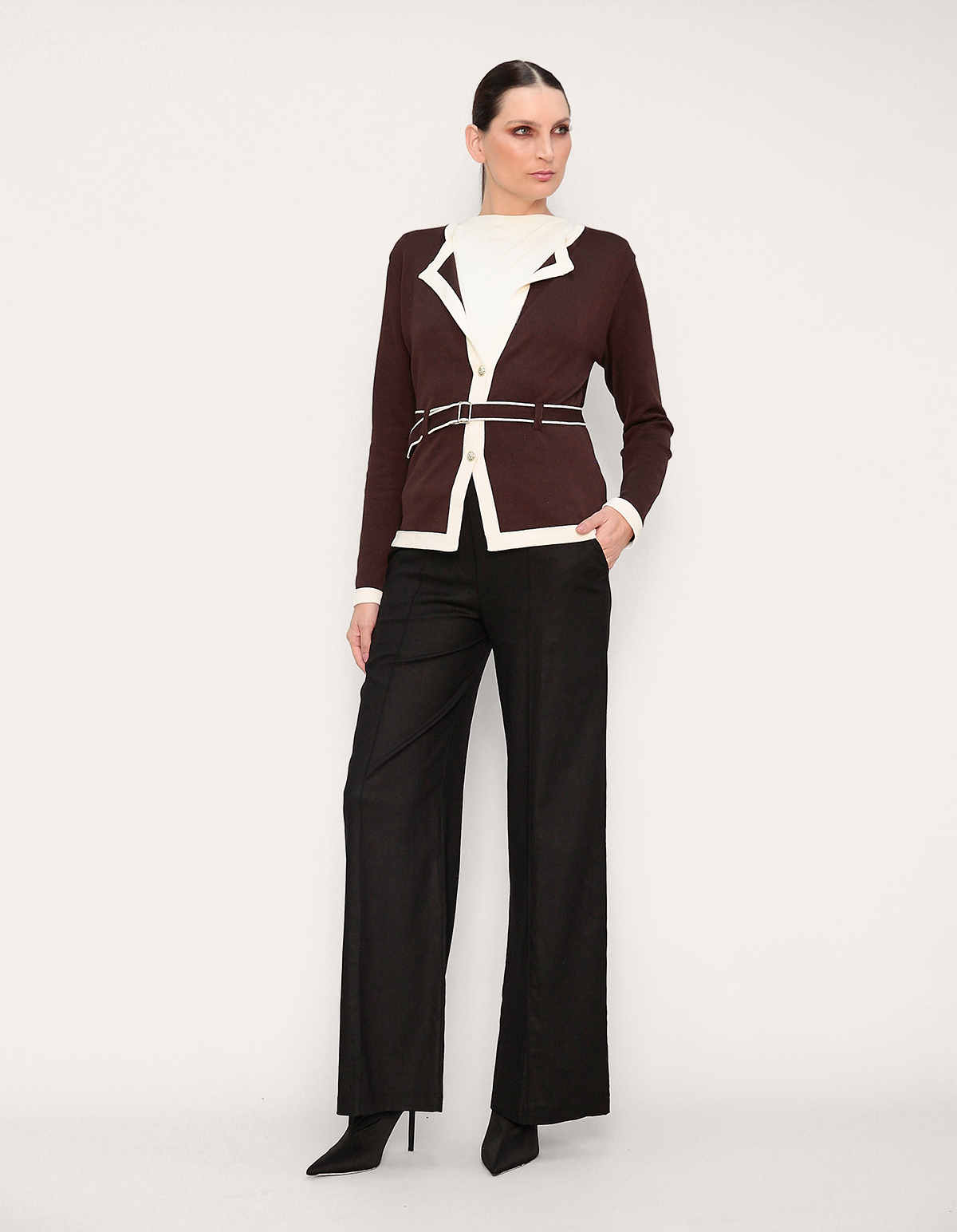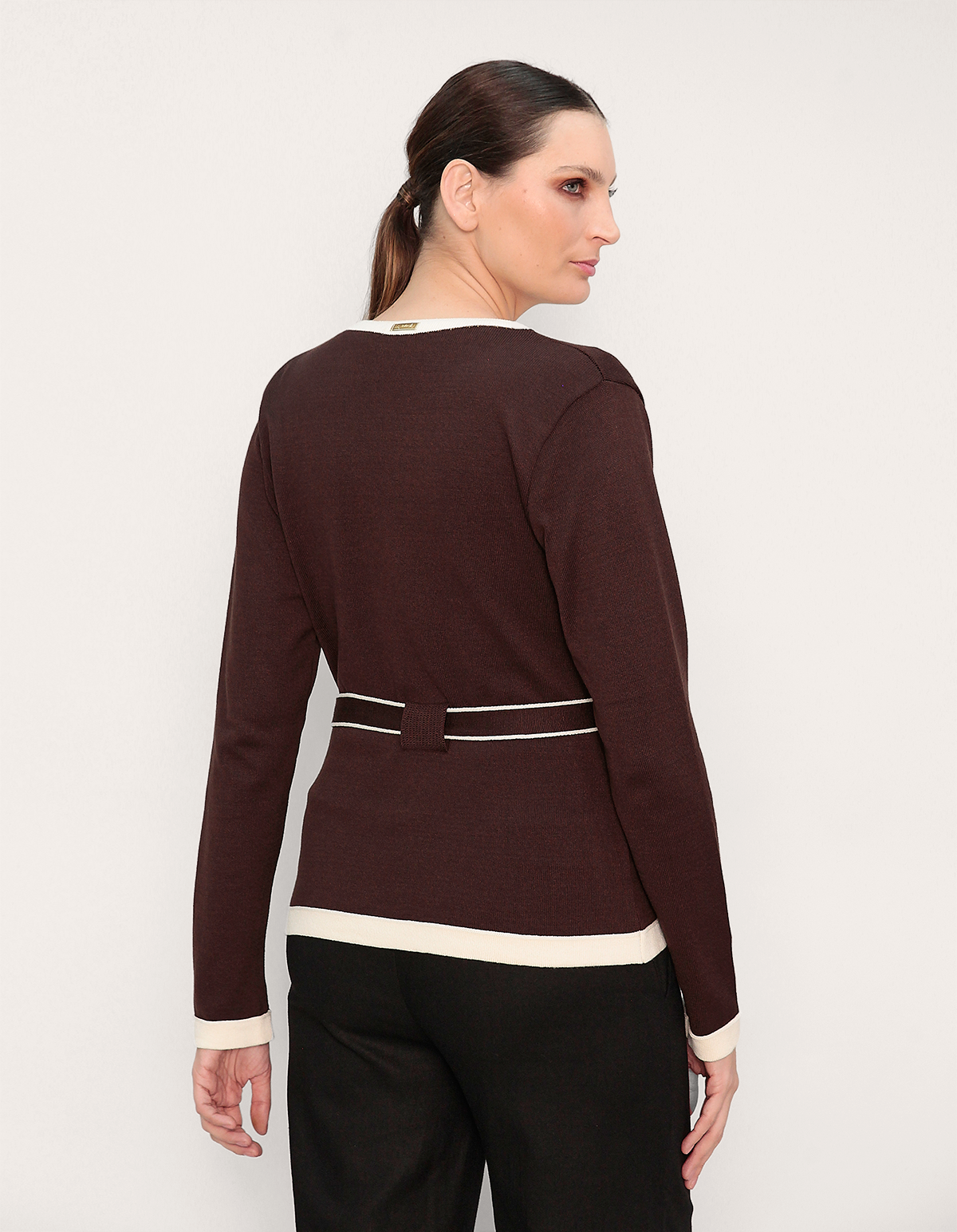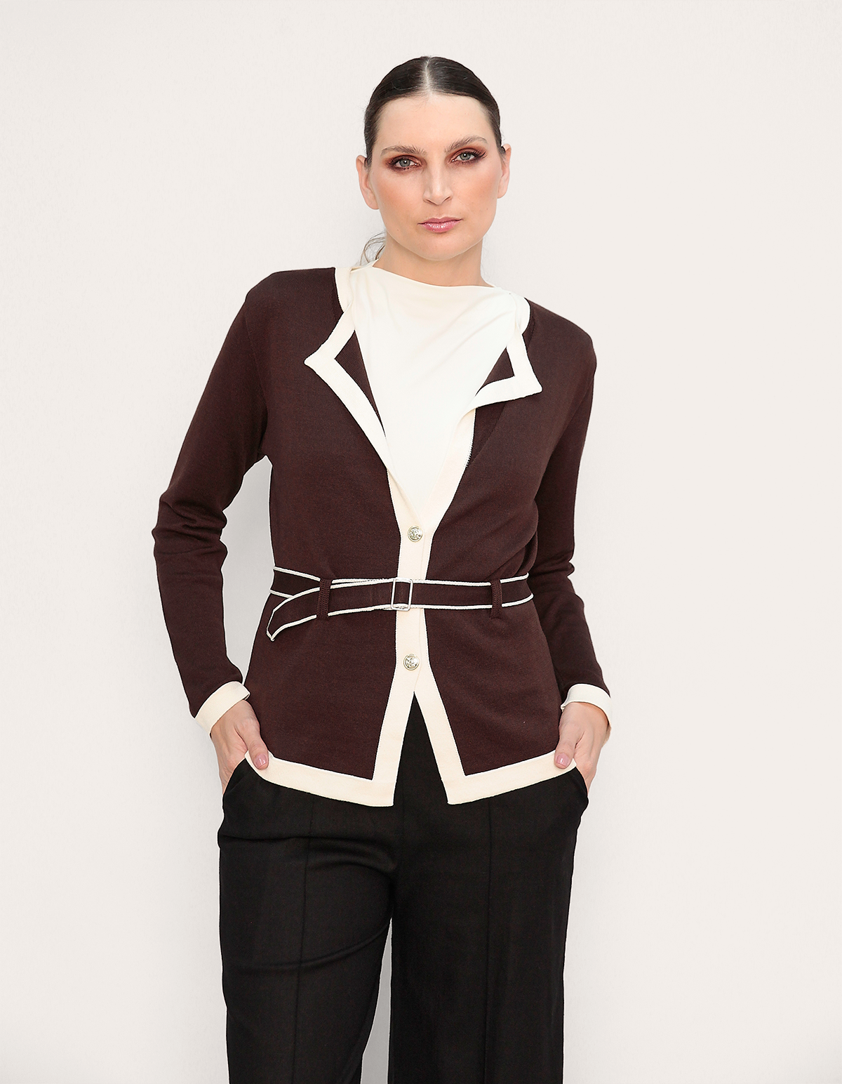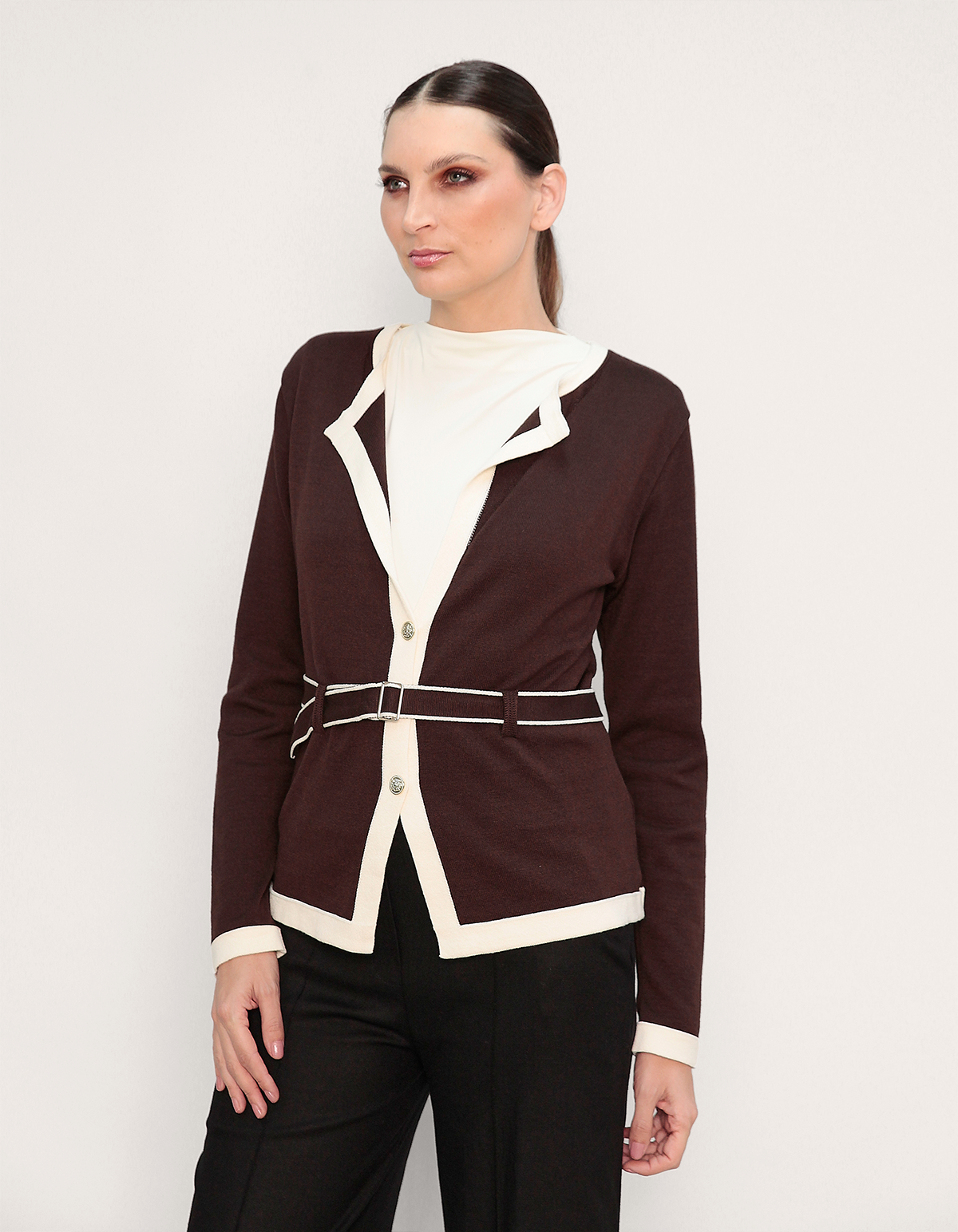O Royal Classic é um casaco que traduz elegância e sofisticação atemporal. Seu tricot bicolor, aliado ao fechamento frontal com botões em formato de brasão e ao cinto embutido, proporciona um ajuste perfeito ao corpo, valorizando a silhueta com charme. Uma peça clássica que se destaca tanto em ambientes de trabalho quanto em ocasiões especiais, garantindo um toque extra de requinte ao seu look.