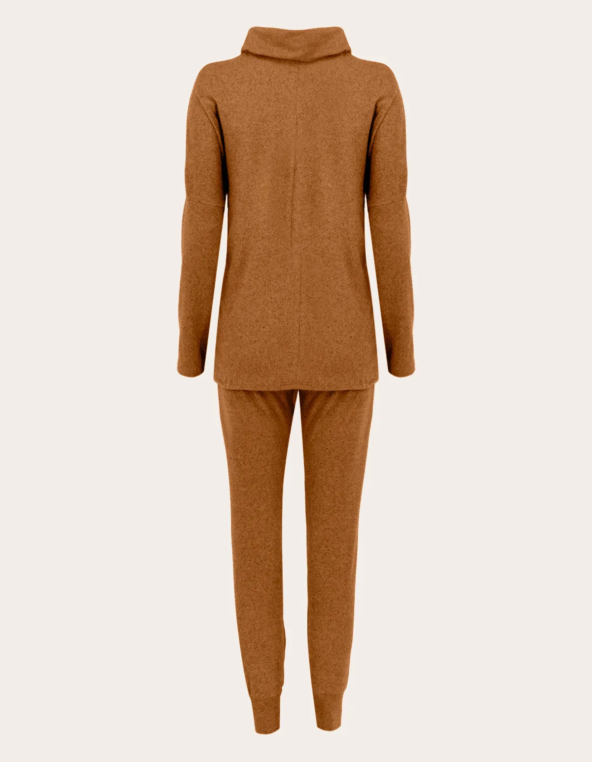 Apresentamos um conjunto que une conforto e estilo, composto por uma blusa de manga longa com modelagem ampla hi-lo e gola alta, junto com uma calça jogger. a blusa oferece um corte moderno e descontraído, enquanto a calça jogger proporciona comodidade e um toque esportivo ao visual. esse conjunto é perfeito para criar um look casual e contemporâneo, adequado para várias ocasiões.