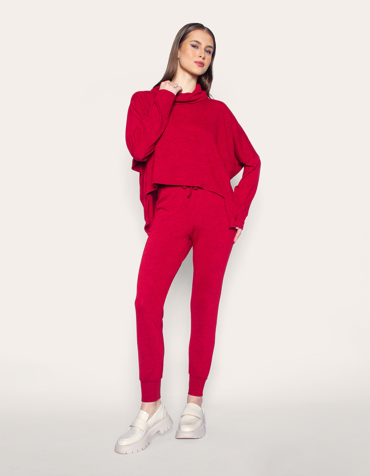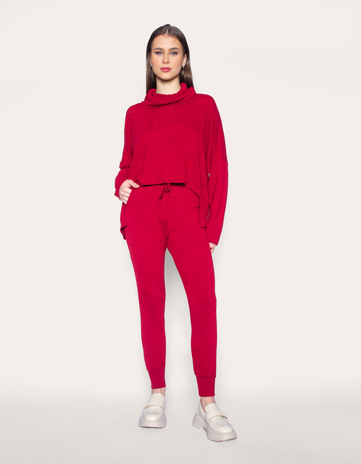 Apresentamos um conjunto que une conforto e estilo, composto por uma blusa de manga longa com modelagem ampla hi-lo e gola alta, junto com uma calça jogger. a blusa oferece um corte moderno e descontraído, enquanto a calça jogger proporciona comodidade e um toque esportivo ao visual. esse conjunto é perfeito para criar um look casual e contemporâneo, adequado para várias ocasiões.