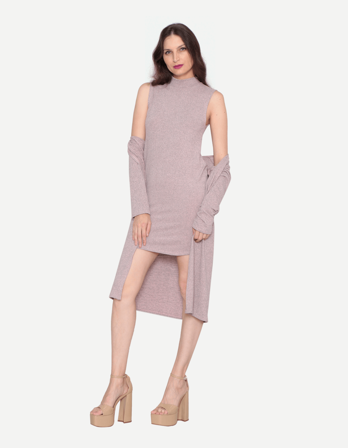Conjunto de vestido curto, cavado com gola alta e cardigan alongado. fique linda na moda e arrase!!!