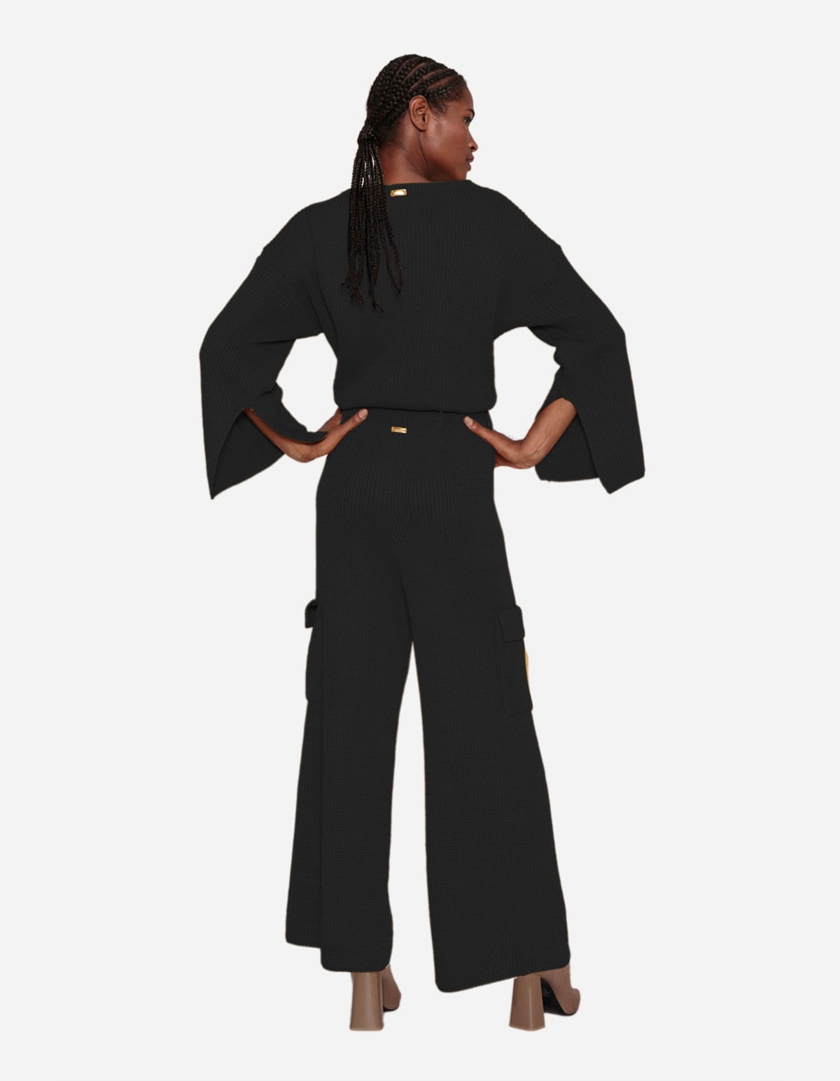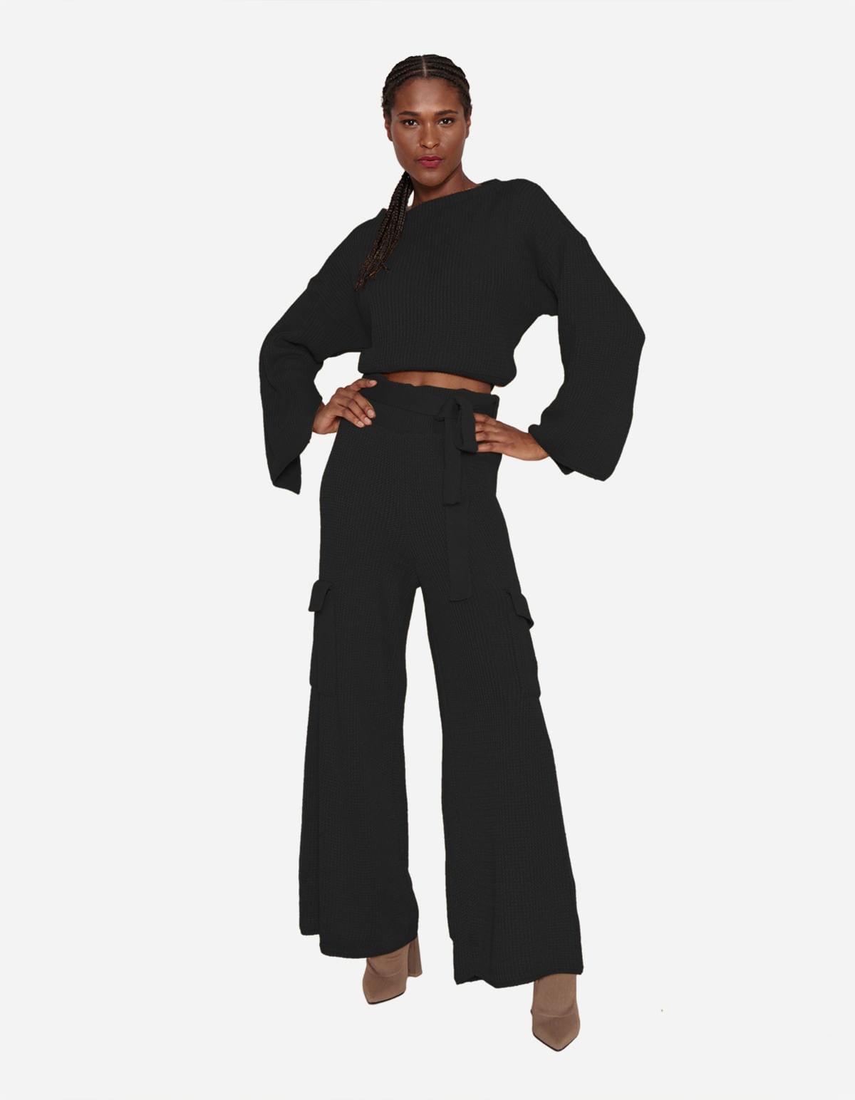 Conjunto blusa cropped+calça pantlona cargo tricot