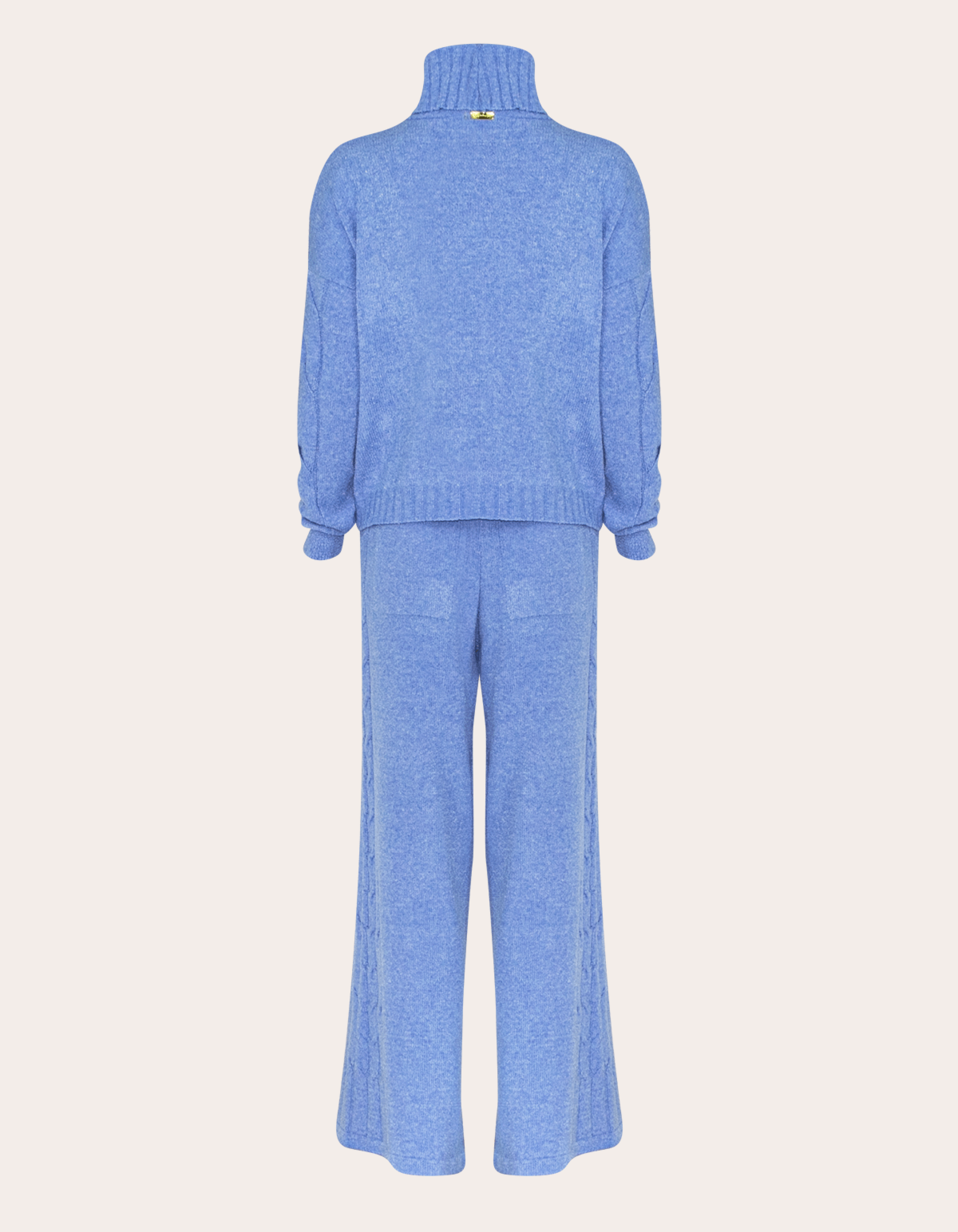 Conjunto blusa tricot trança gola alta+calça pantalona
