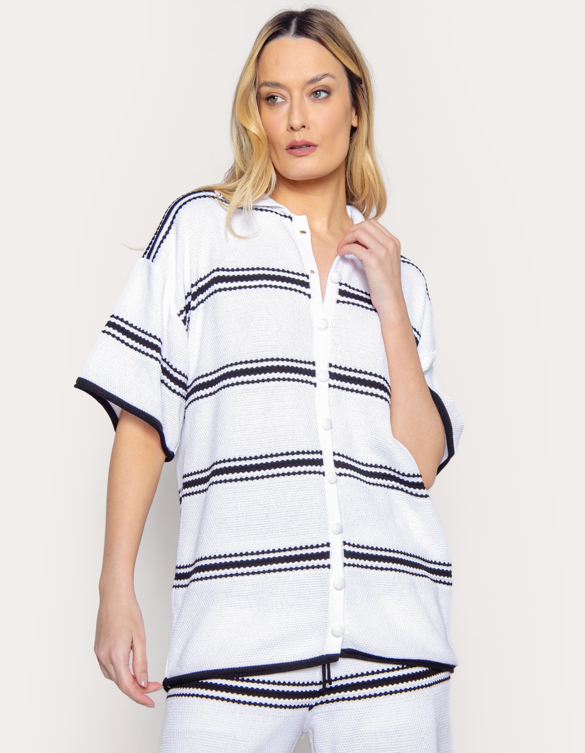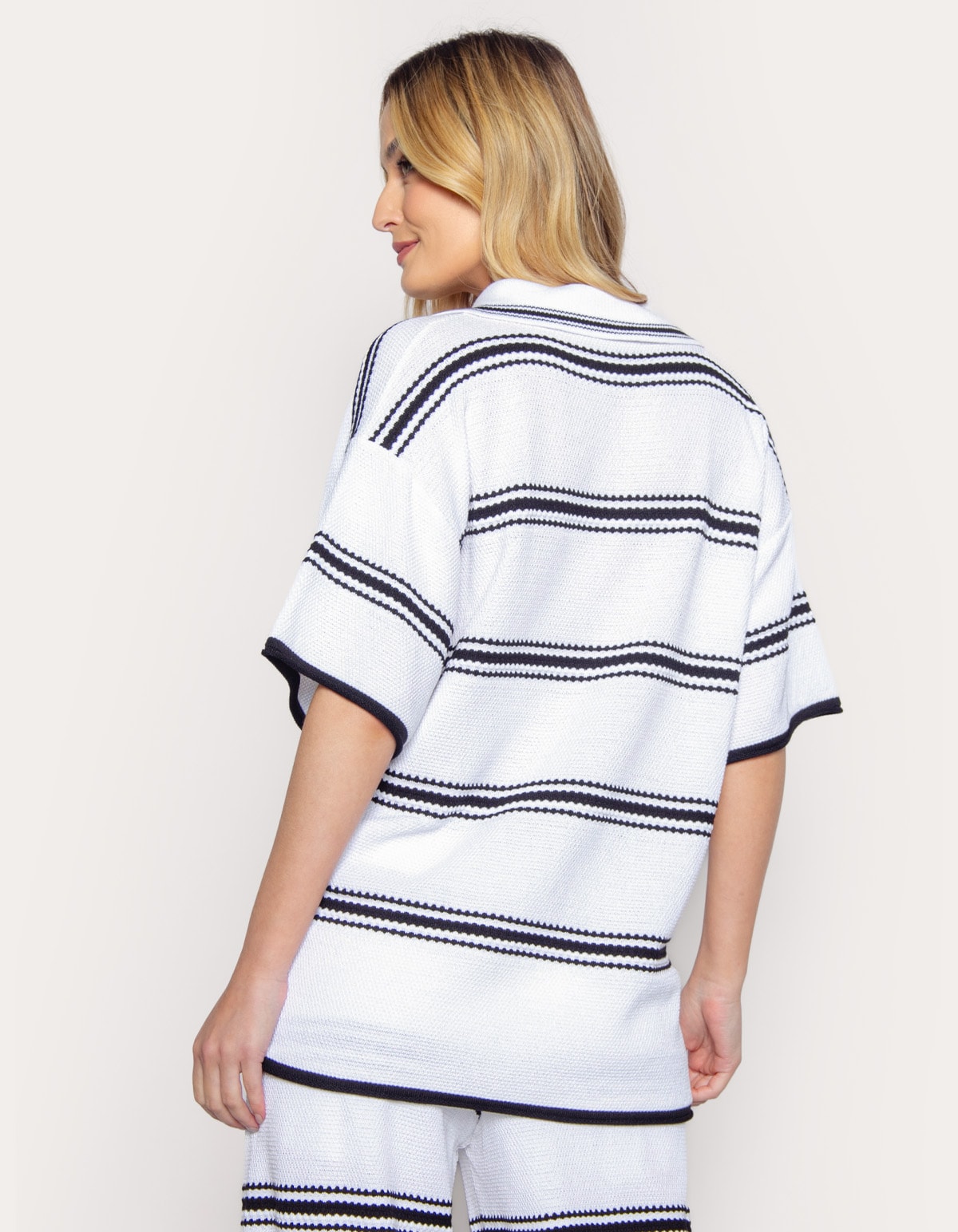 Conjunto camisa + calça pantalona tricot listras