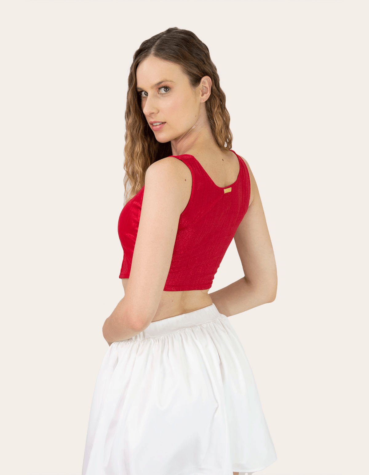 Apresentamos uma blusa cropped metalizada com modelagem estruturada que lembra um corset. esta peça elegante combina brilho metalizado com um design contemporâneo. possui bojo para suporte e alças largas para conforto. ideal para ocasiões especiais, essa blusa proporciona glamour e destaque. a combinação única de metalização e modelagem corset cria uma silhueta marcante e envolvente, tornando-a perfeita para compor looks sofisticados e memoráveis.