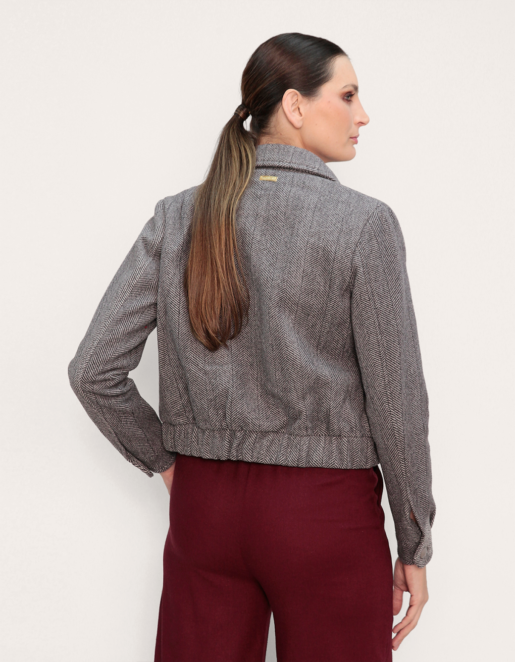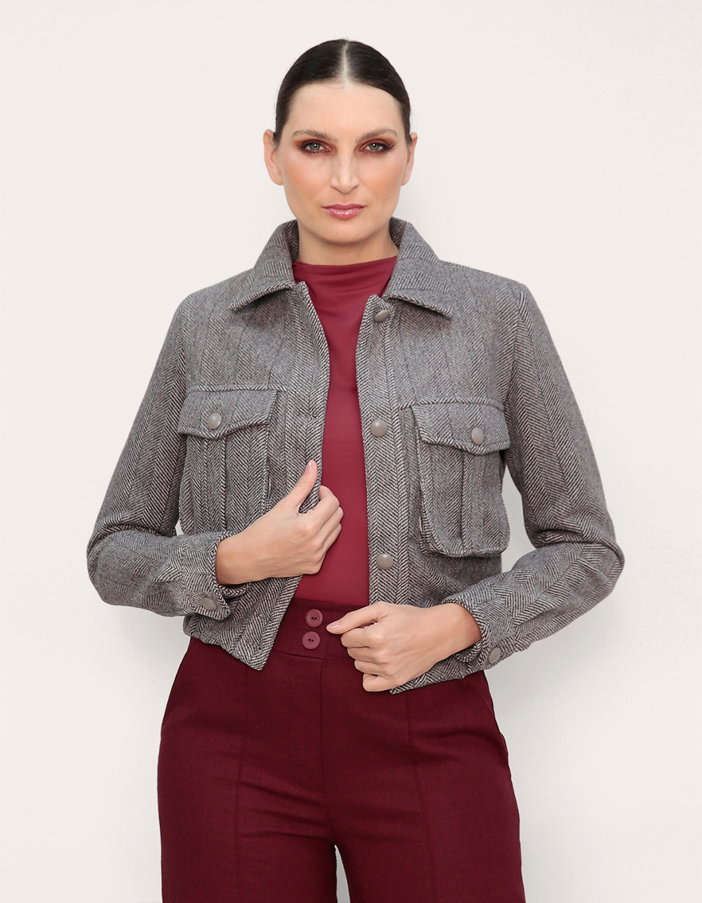 Esta jaqueta curta é uma peça de moda que combina simplicidade com estilo. com uma gola que confere elegância e aquecimento, ele possui bolsos que adicionam funcionalidade ao design. uma característica única deste casaco está nos botões, que são posicionados na frente e nas lapelas, acrescentando um toque de originalidade e um estilo diferenciado ao visual. este casaco é a escolha perfeita para um look casual e moderno, adequado para diversas ocasiões onde você deseja se destacar com um toque de ousadia.