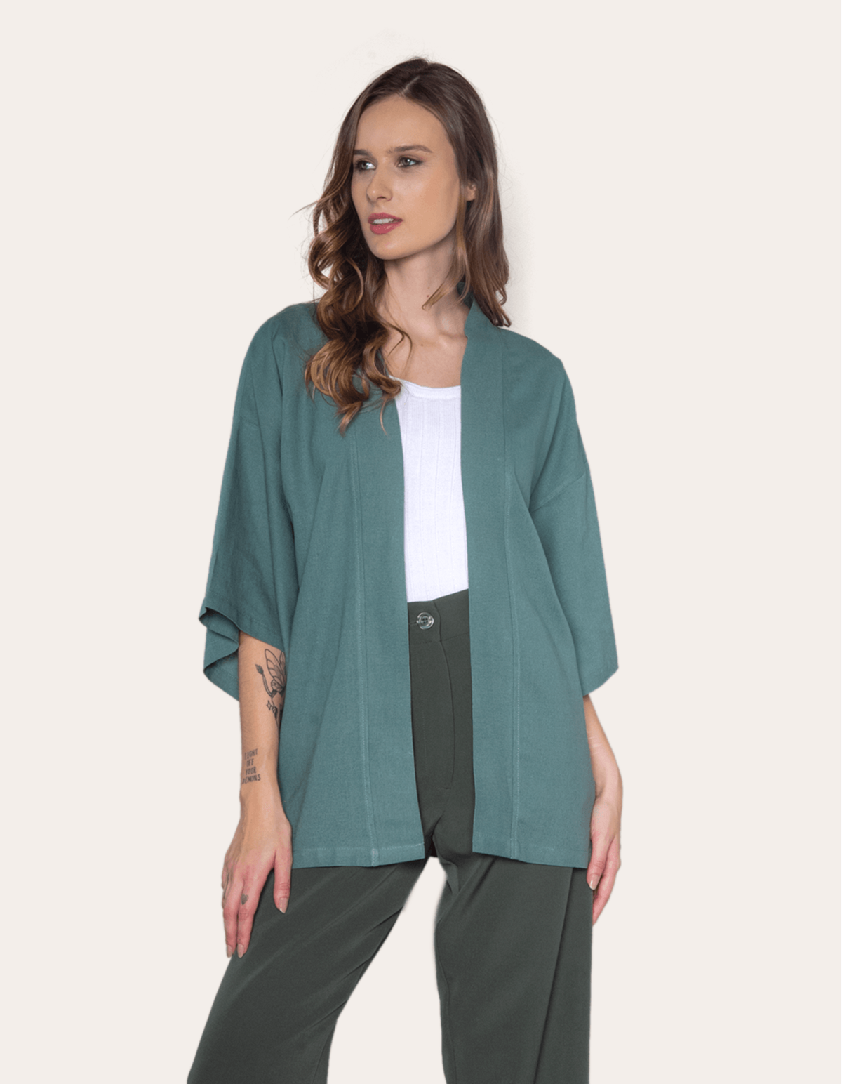 Kimono mangas 3/4, formato amplo e fluído. possui um caimento bem soltinho no corpo, super confortável, versátil e moderno para você arrasar em qualquer ocasião!