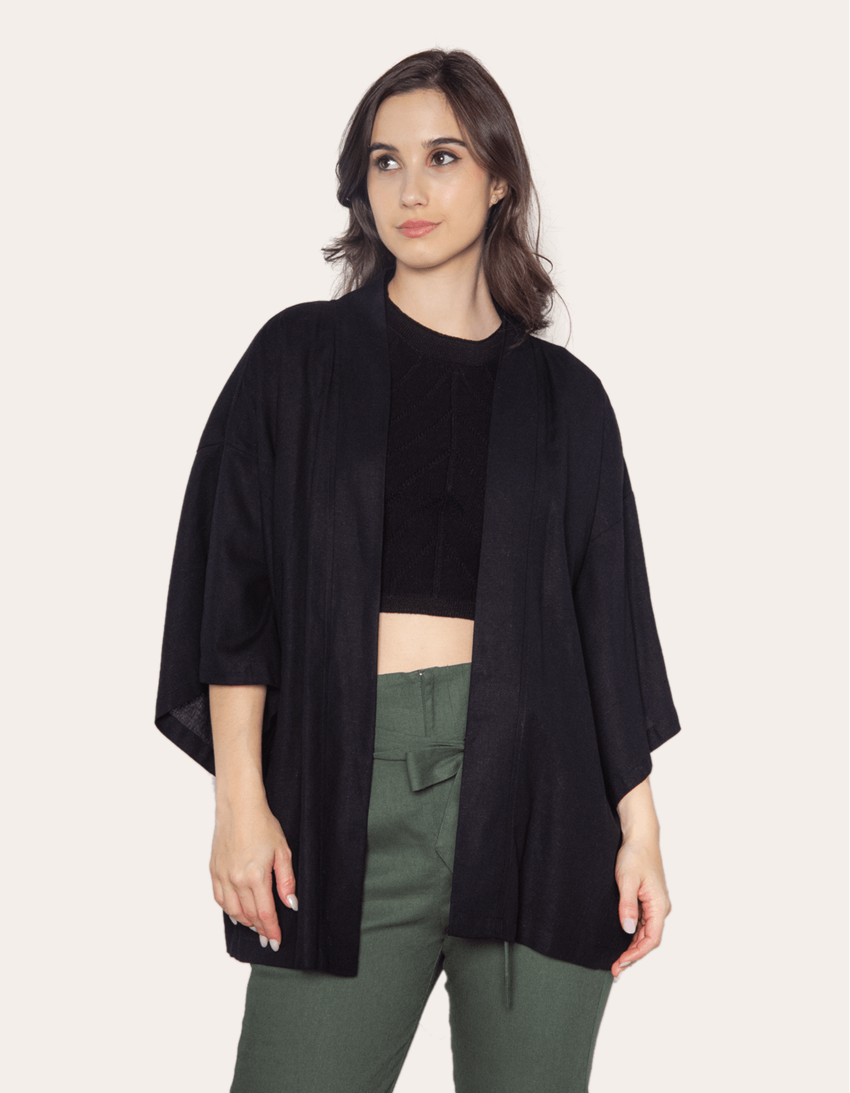 Kimono mangas 3/4, formato amplo e fluído. possui um caimento bem soltinho no corpo, super confortável, versátil e moderno para você arrasar em qualquer ocasião!