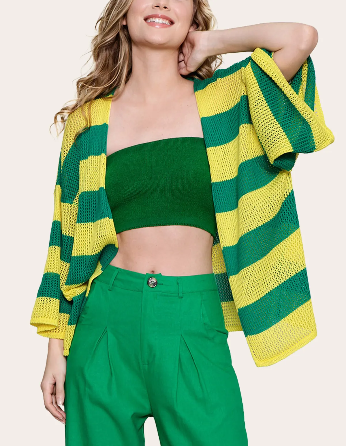 Apresentamos o kimono de tricot com manga 3/4, uma peça que une conforto e estilo de forma excepcional. com mangas 3/4, proporciona um visual leve e versátil, perfeito para diferentes ocasiões.
