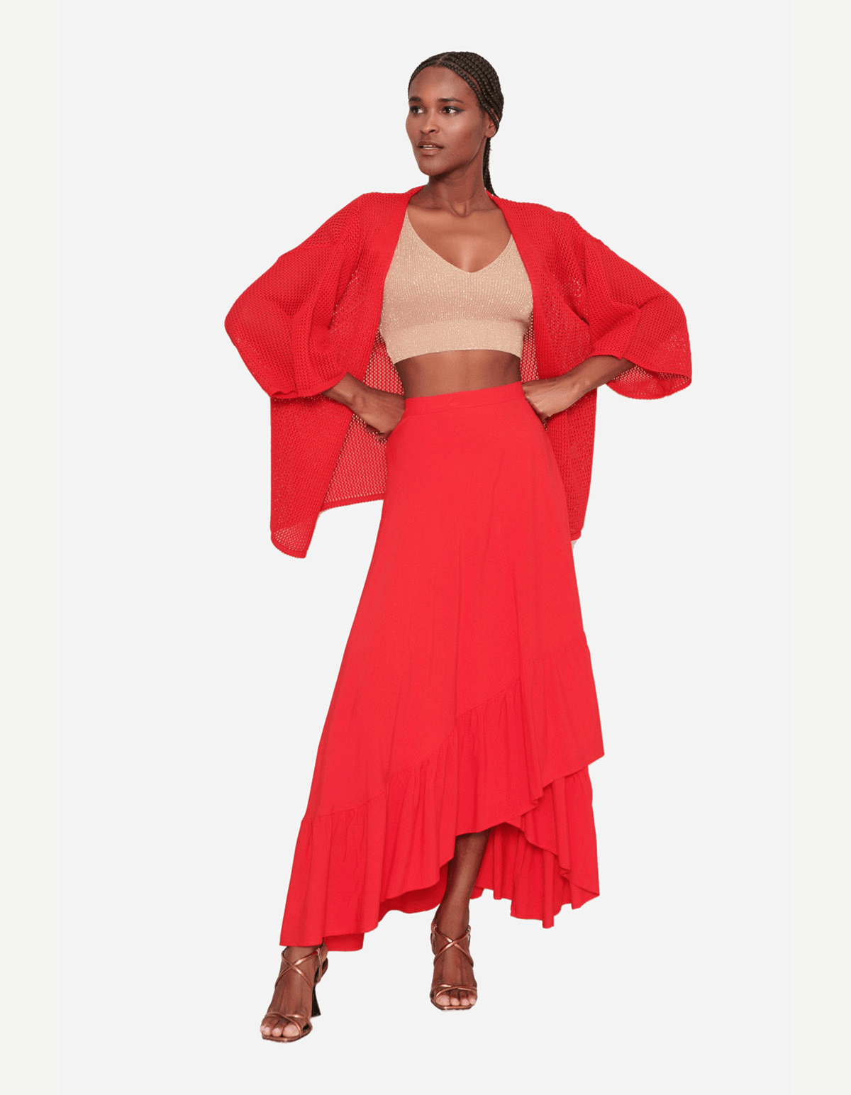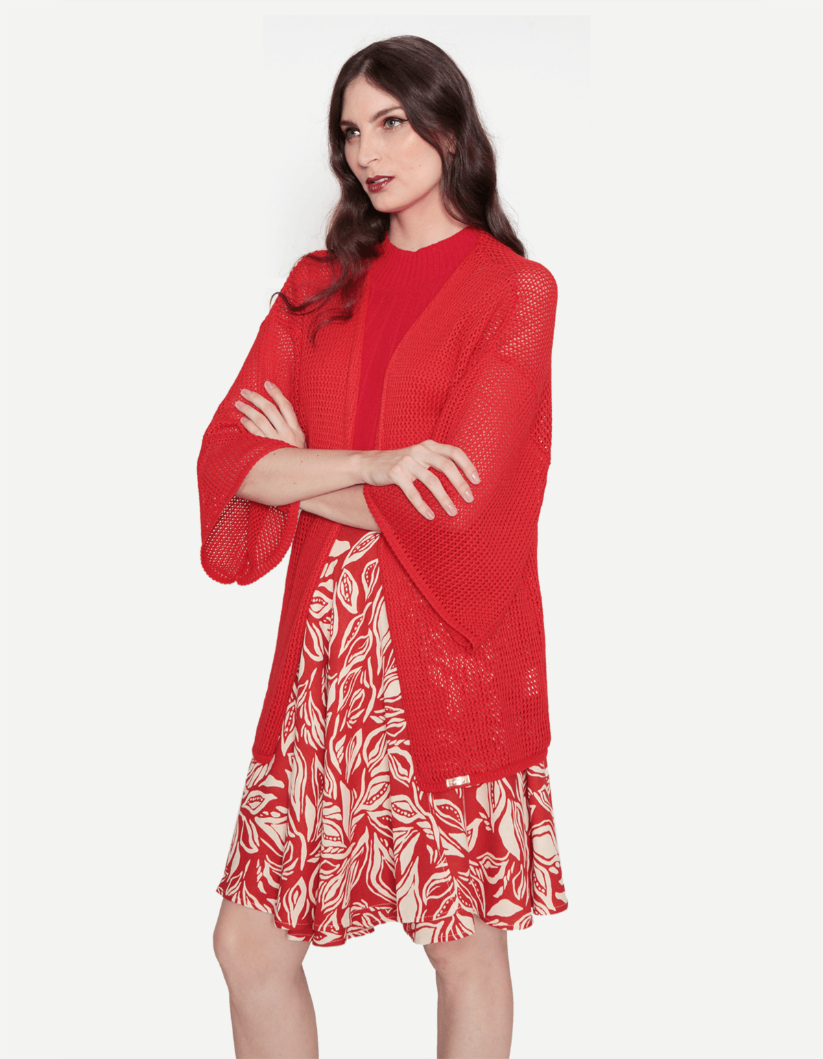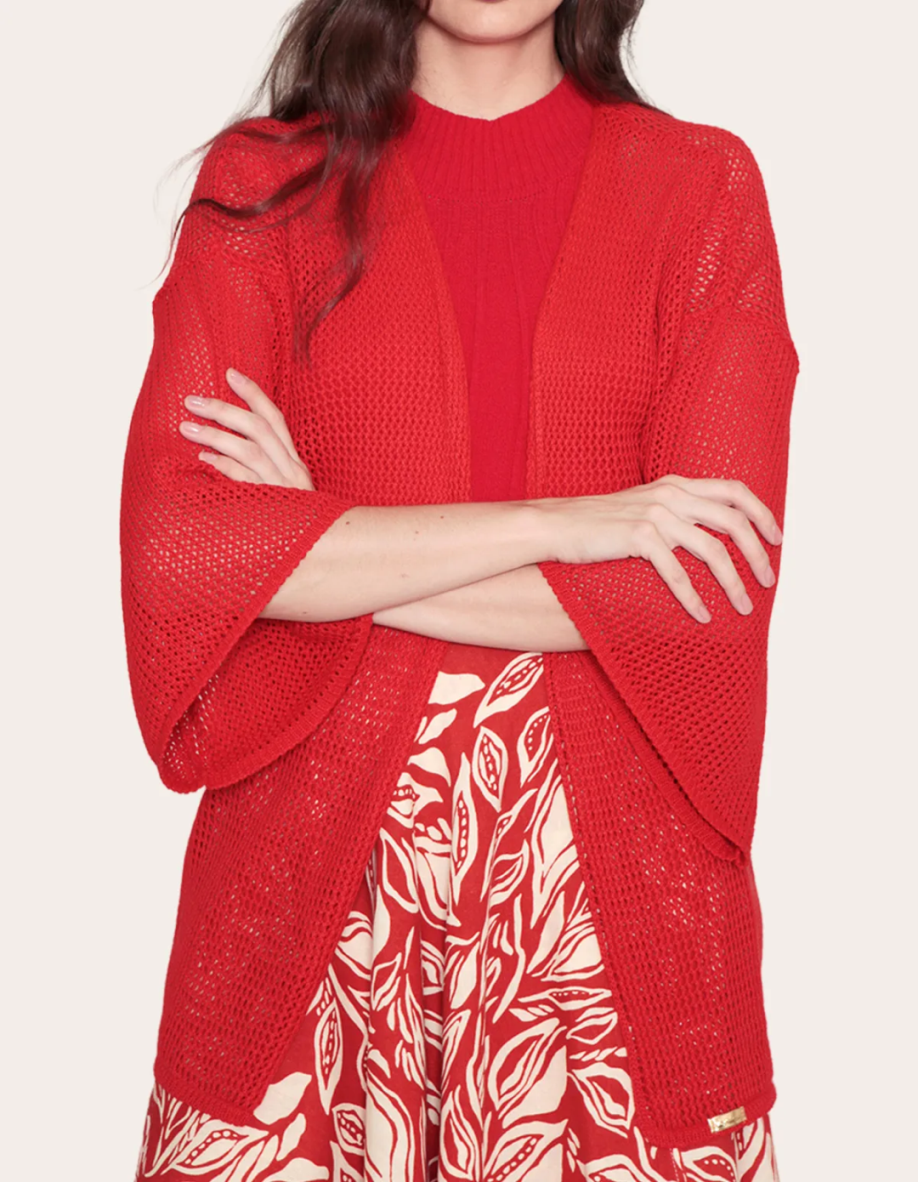 Apresentamos o kimono de tricot com manga 3/4, uma peça que une conforto e estilo de forma excepcional. com mangas 3/4, proporciona um visual leve e versátil, perfeito para diferentes ocasiões.