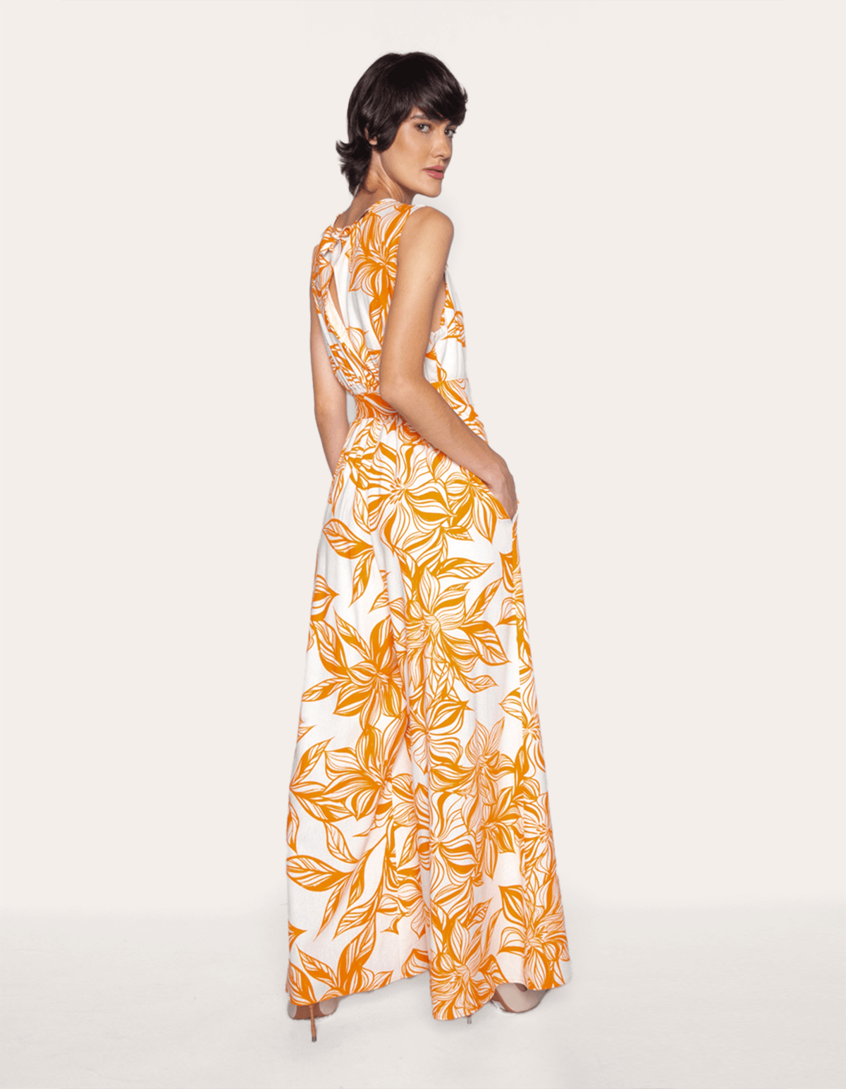 Macacão cavado estamapado, possui lastex atrás na cintura. acompanha faixa. para looks confortáveis e requintados!