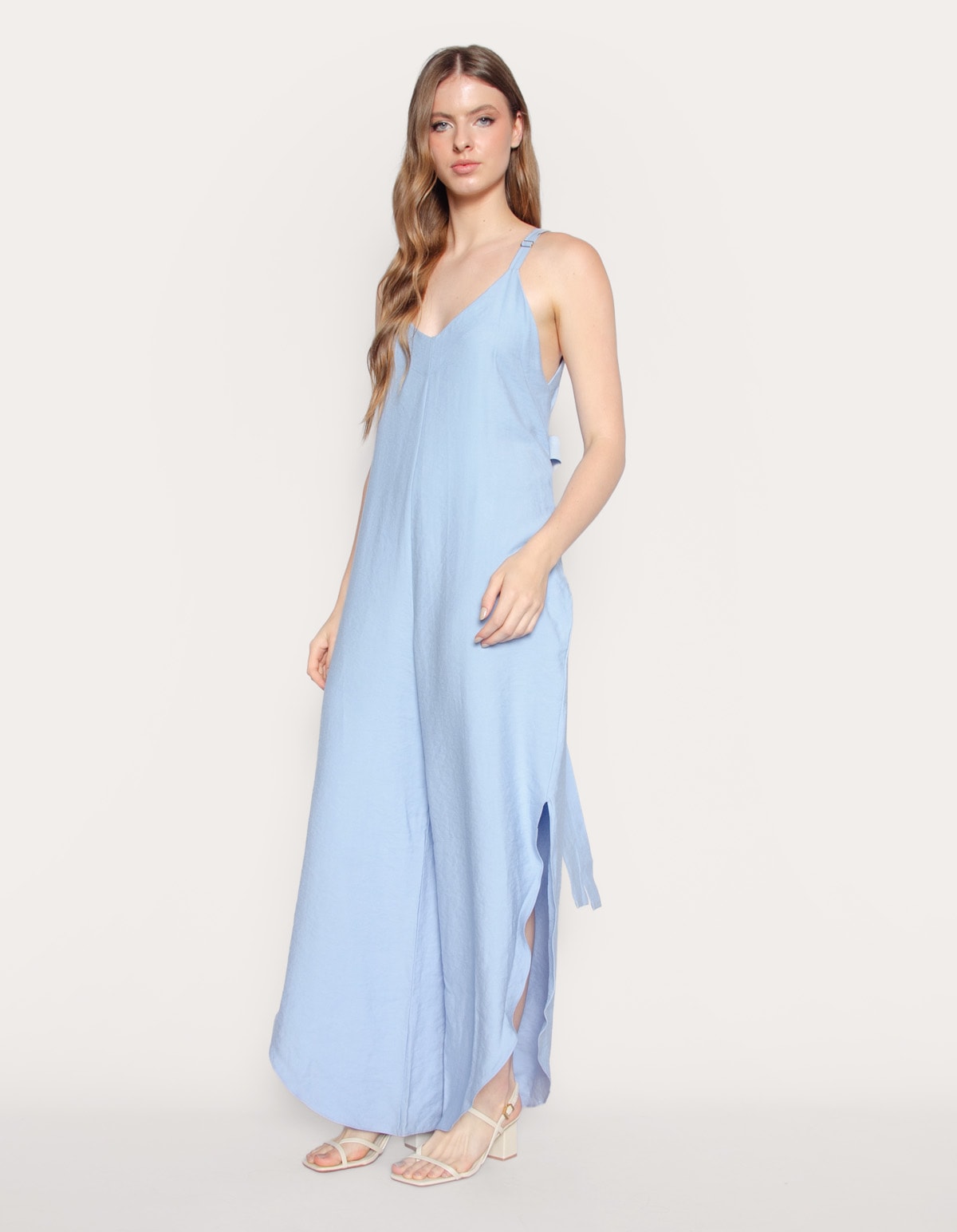 Macacão decote v, alças com regulador, possui fendas nas laterais da barra e um faixa embutida na cintura para amarrar atrás ou na frente dando um ajuste maior e modelando o macacão ao corpo. perfeito para várias ocasiões com versatilidade e elegância.
