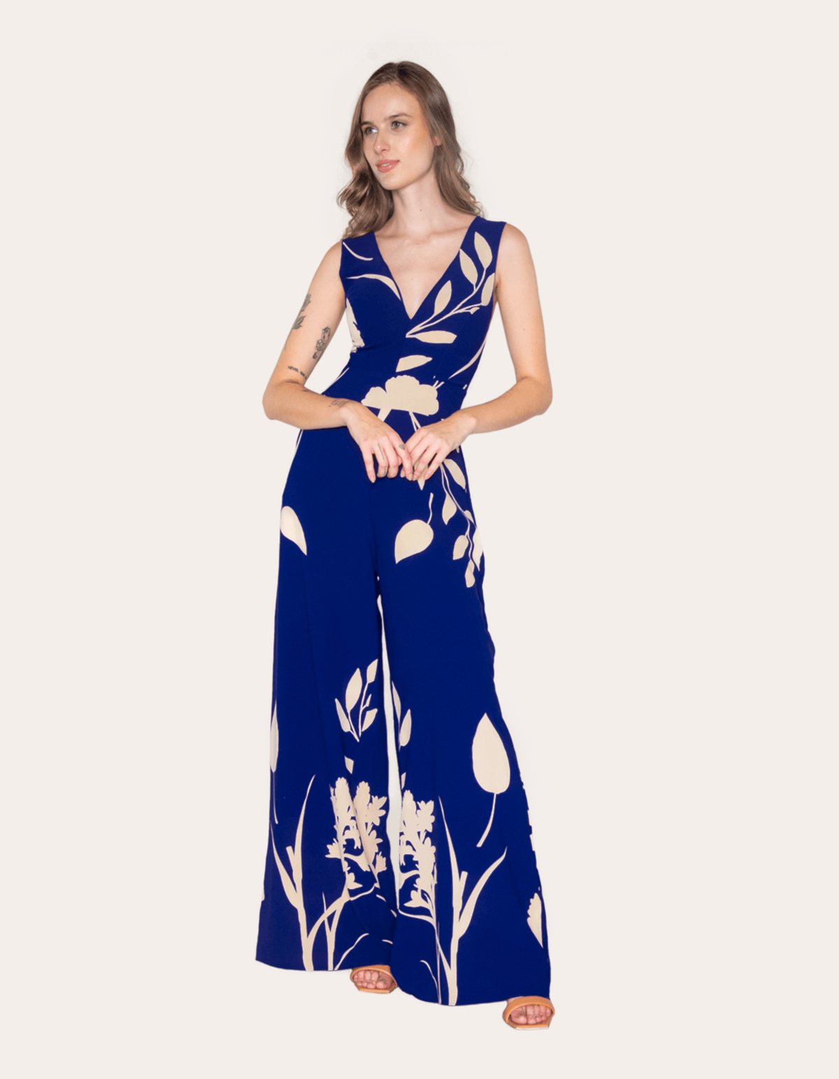 Macacão pantalona, decote v com bojo e lastex nas costas. leve, fluído e fresquinho. perfeito para diversas ocasiões.
