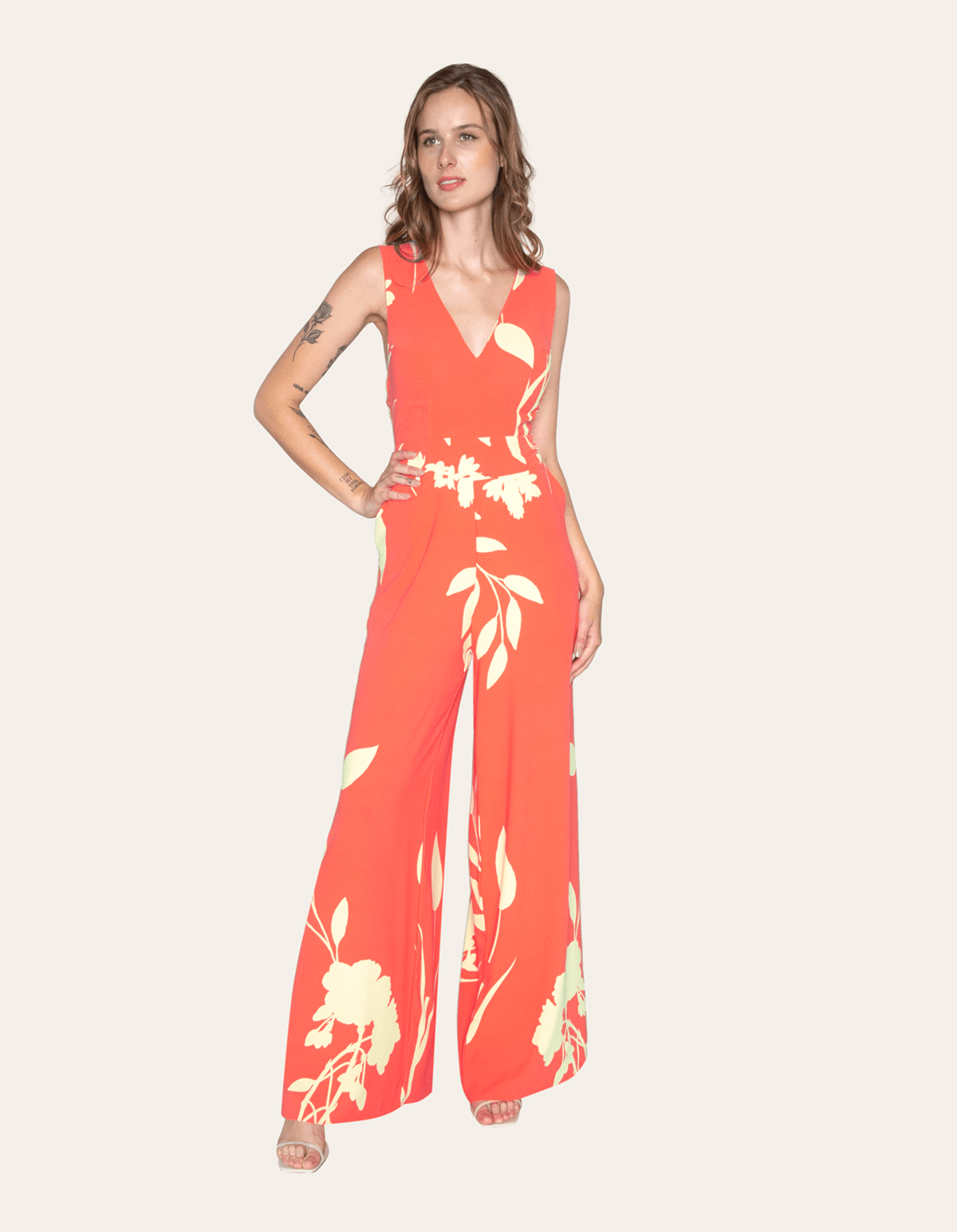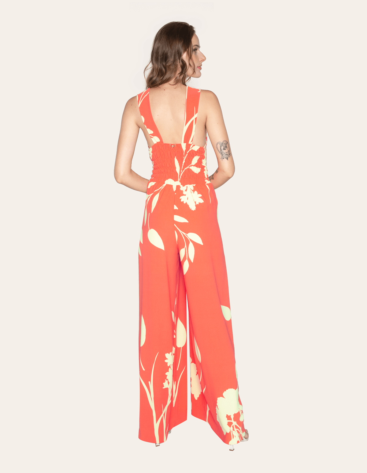 Macacão pantalona, decote v com bojo e lastex nas costas. leve, fluído e fresquinho. perfeito para diversas ocasiões.