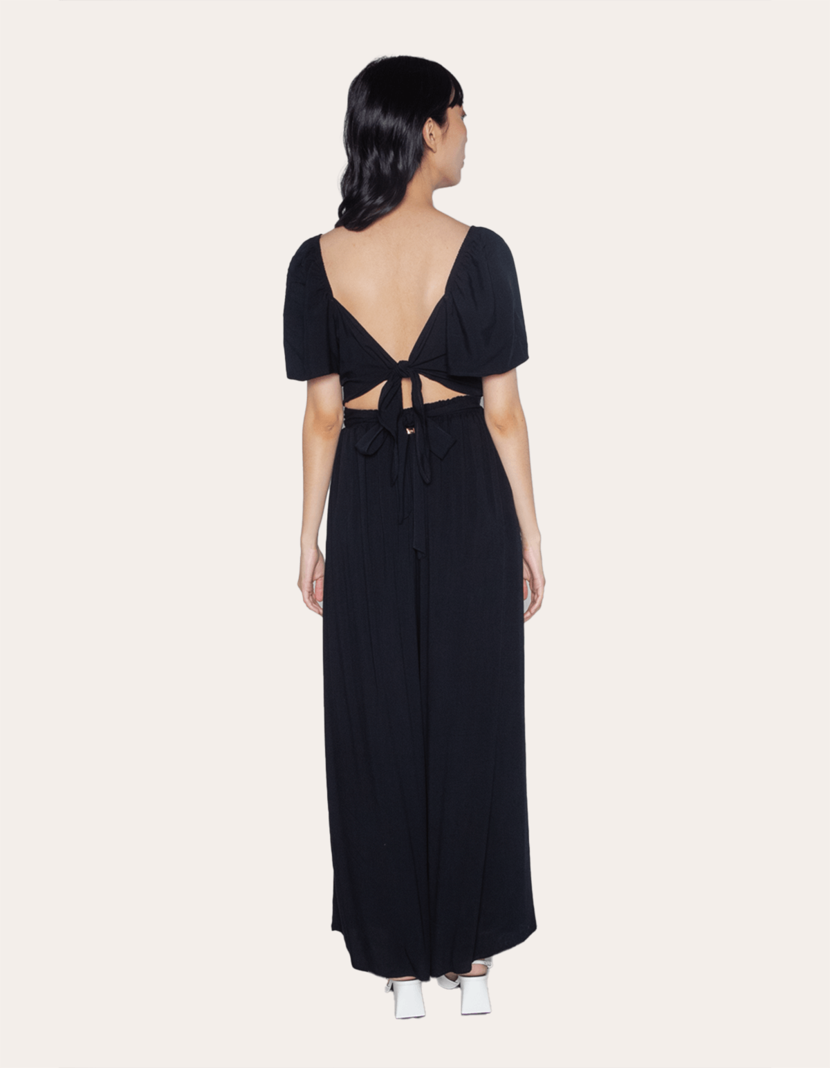 Apresentamos um macacão de manga godê, uma peça que combina estilo e elegância. com um detalhe único, esse macacão possui bojo com vazado, adicionando um toque de moda ao design. a amarração nas costas proporciona um ajuste personalizado e um visual charmoso. ideal para criar um look sofisticado e moderno em diversas ocasiões.
