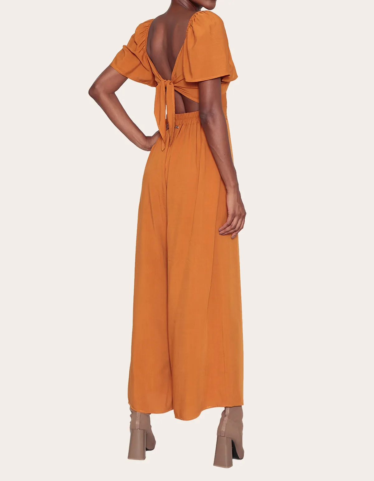 Apresentamos um macacão de manga godê, uma peça que combina estilo e elegância. com um detalhe único, esse macacão possui bojo com vazado, adicionando um toque de moda ao design. a amarração nas costas proporciona um ajuste personalizado e um visual charmoso. ideal para criar um look sofisticado e moderno em diversas ocasiões.