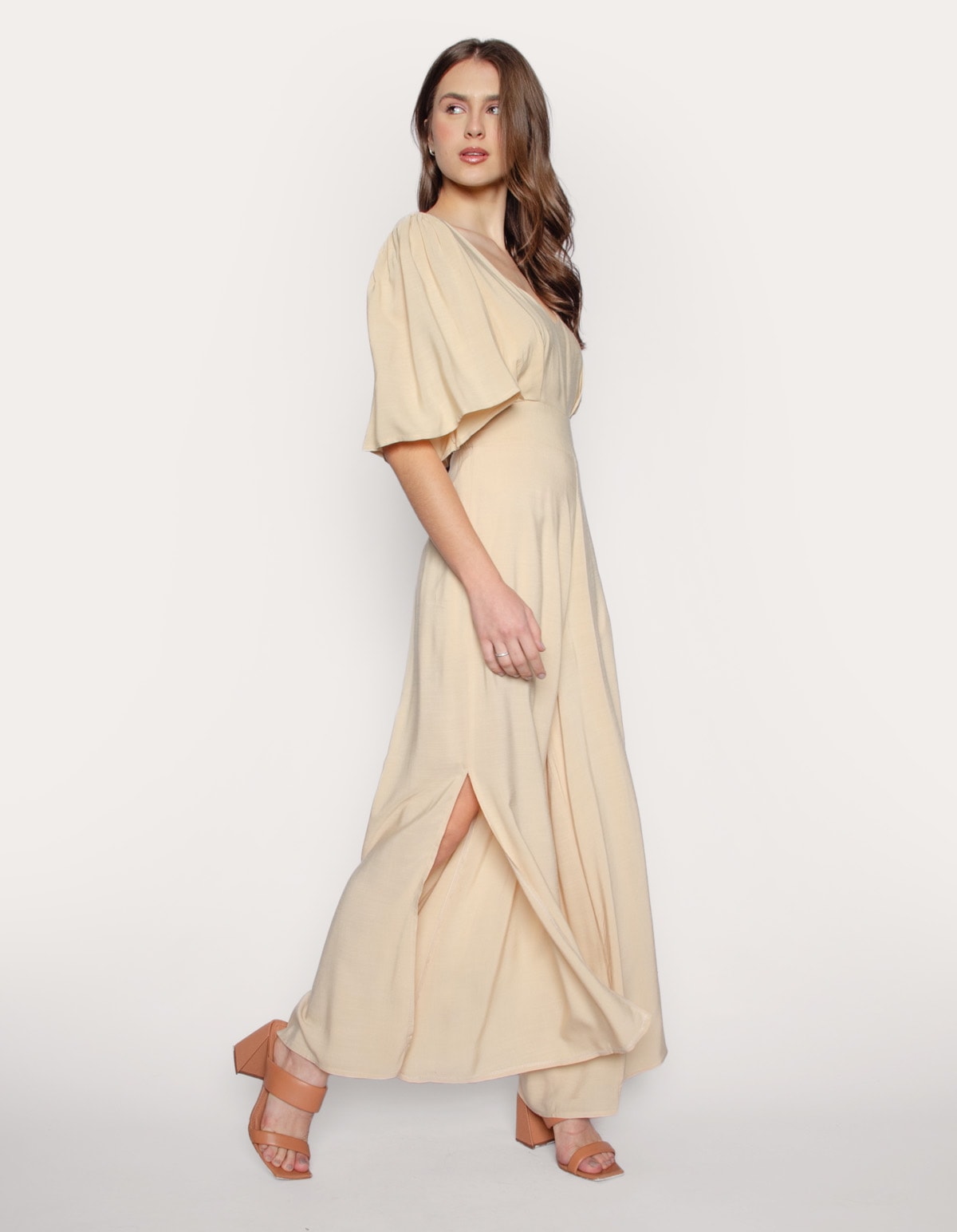 Macacão manga godê liso