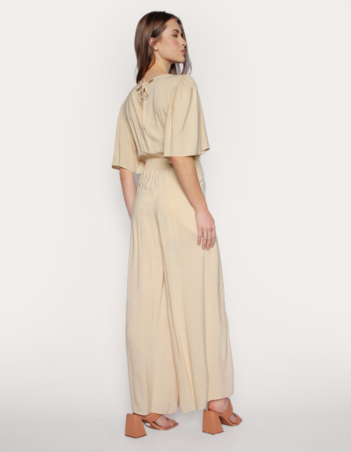 Macacão manga curta godê, decote princesa, cintura na parte das costas com lastex. peça de moda única e cheia de estilo, escolha sofisticada para quem procura um visual moderno.
