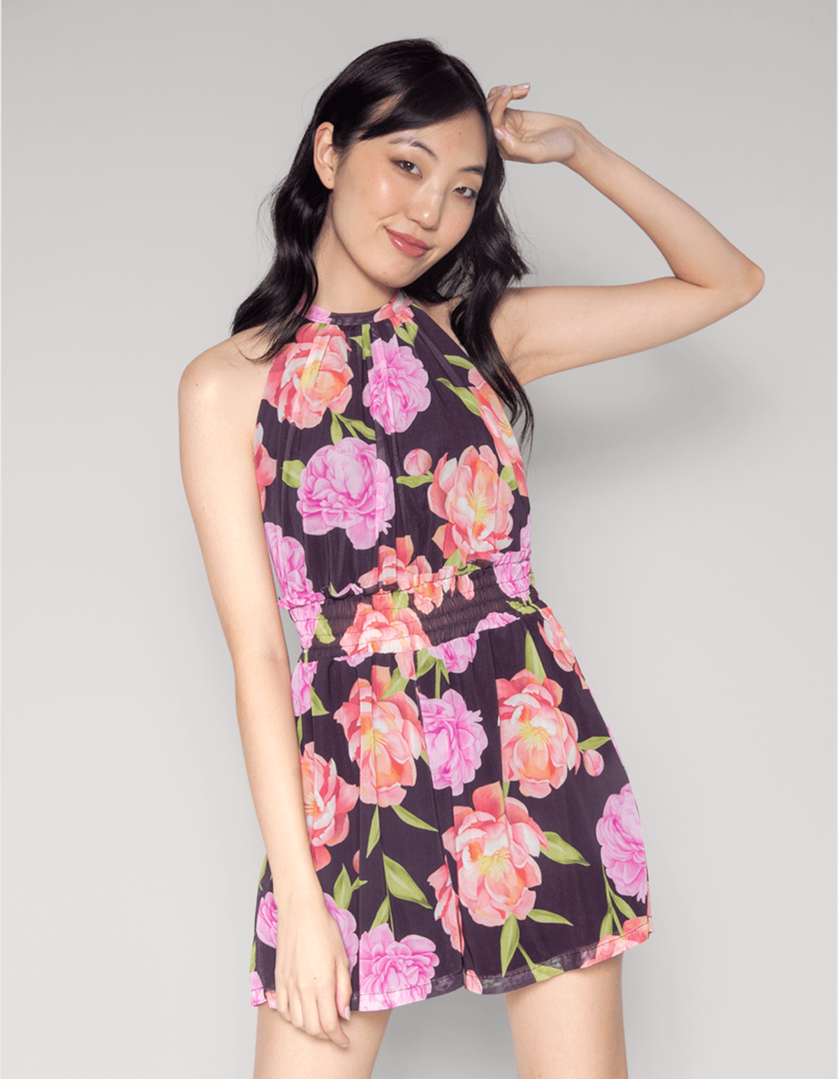 Macaquinho de tule estampado com bojo, com franzido na gola e lastex cintura. uma peça confortável e fresquinha, uma ótima opção para esses dias quentes.