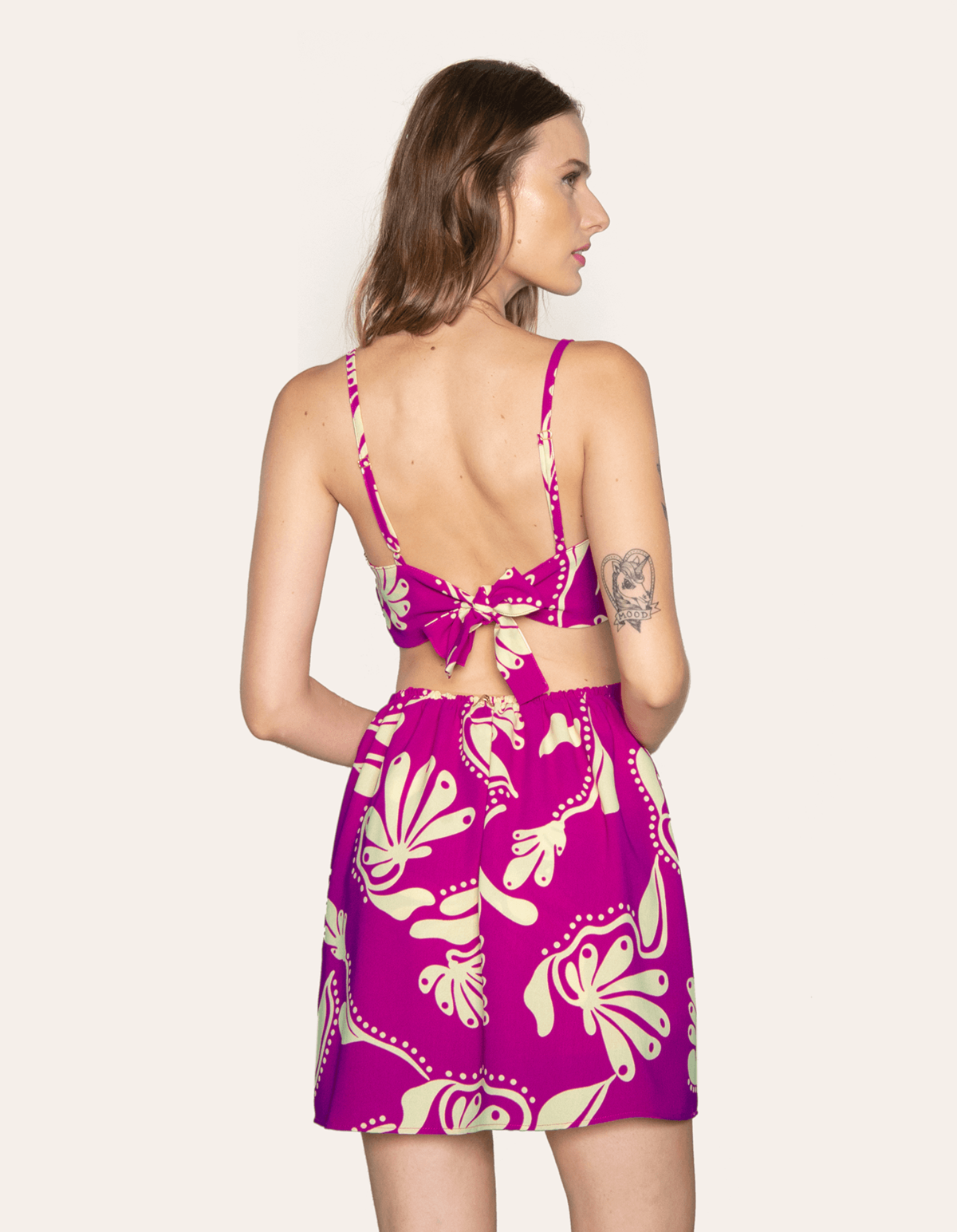 Macaquinho/vestido estampado, alcinha fina com regulador, possui bojo, elástico na cintura costas, e amarração atrás. um look moderno e elegante. proporciona conforto e beleza para os dias quentes.