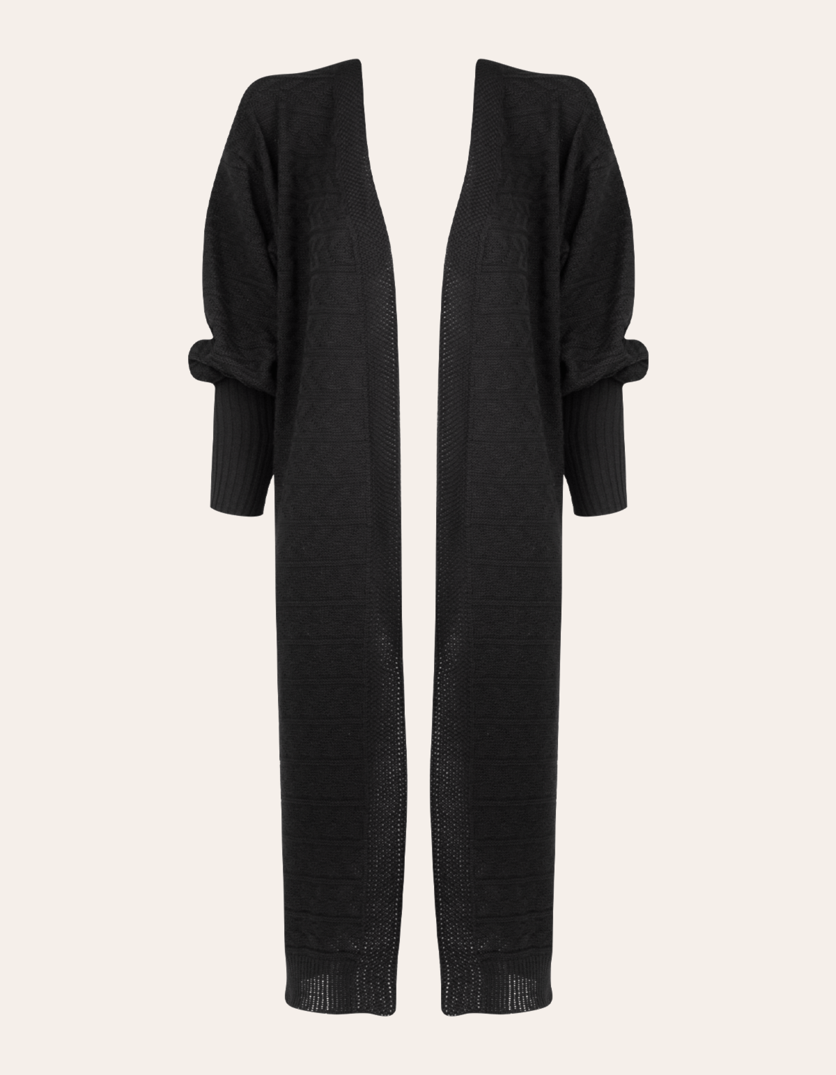 Casaco de tricot alongado sem abotoamento. prepare-se para se vestir com estilo e conforto inigualáveis com o nosso maxi cardigan de tricot.